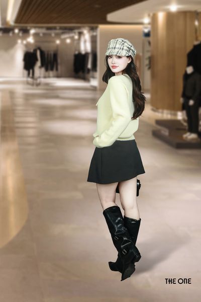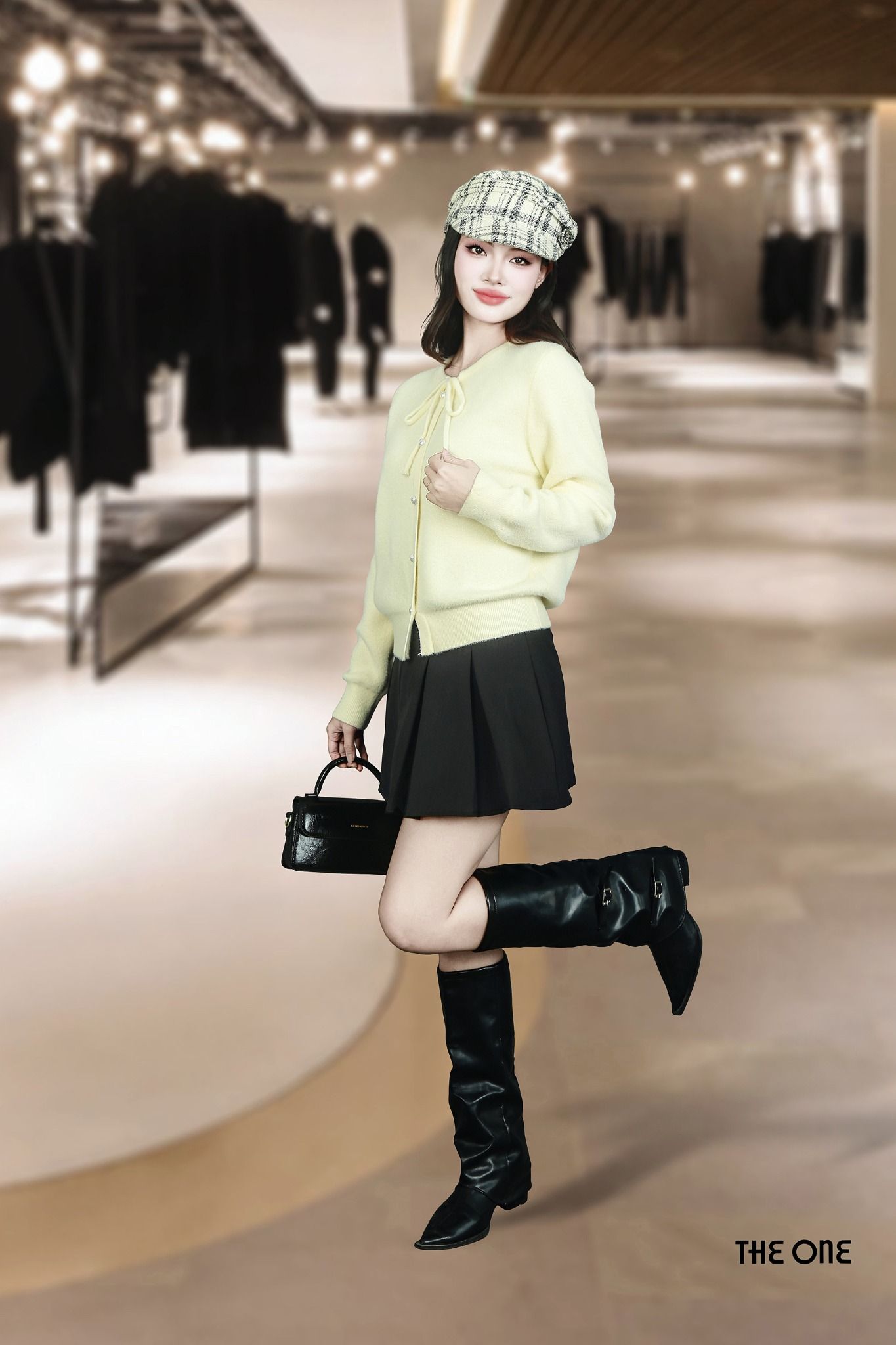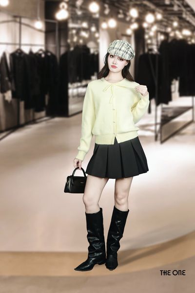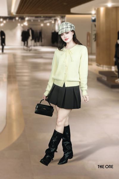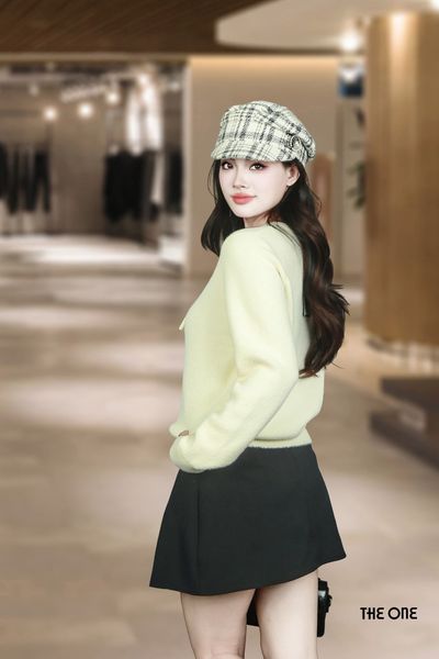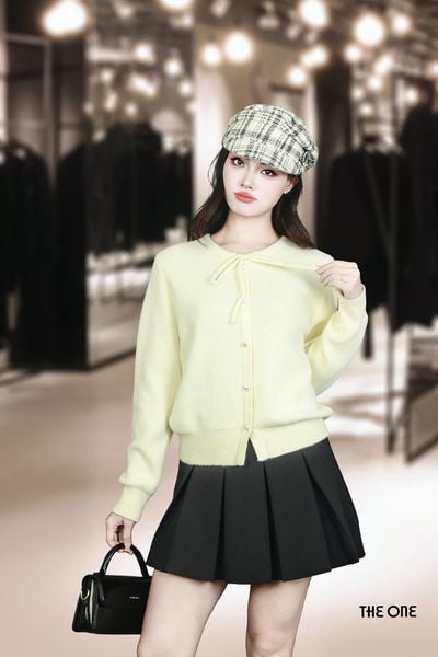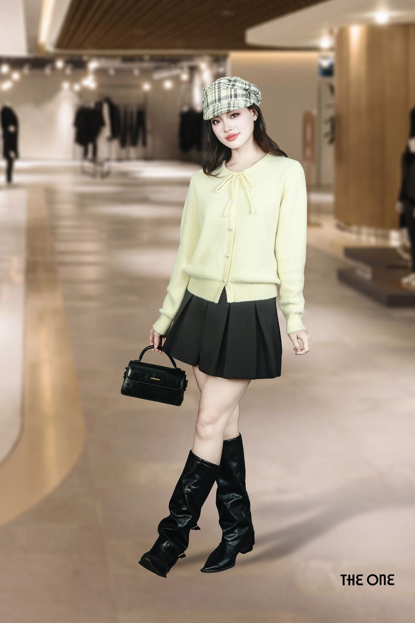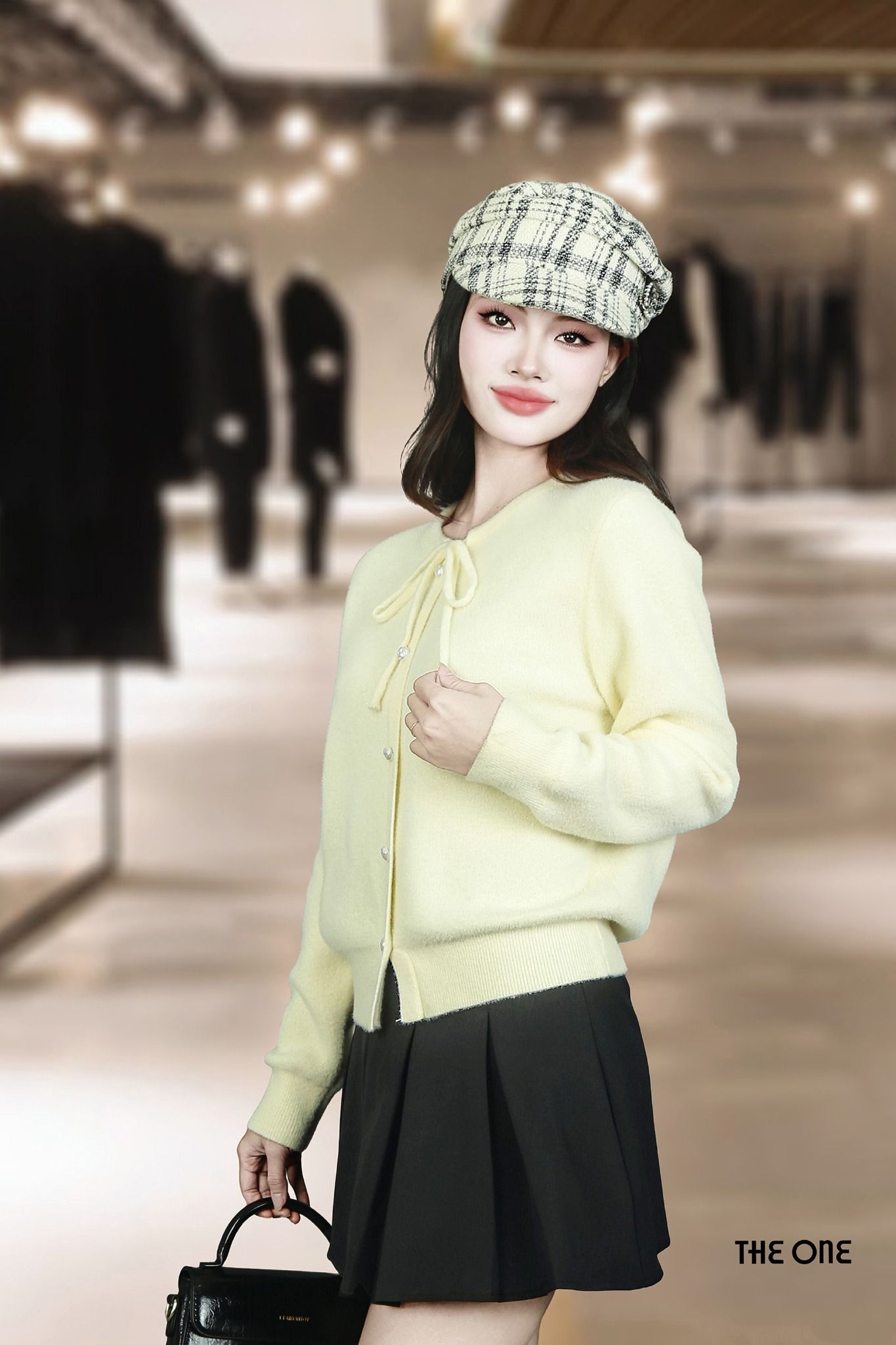 Áo len lông thỏ kem KT tay dài bo gấu cổ tròn buộc nơ