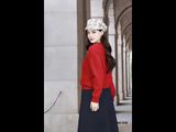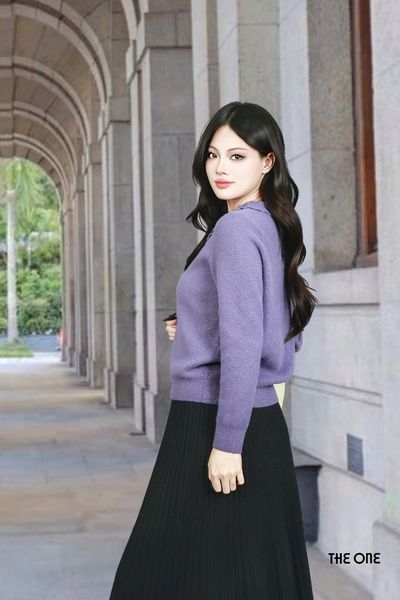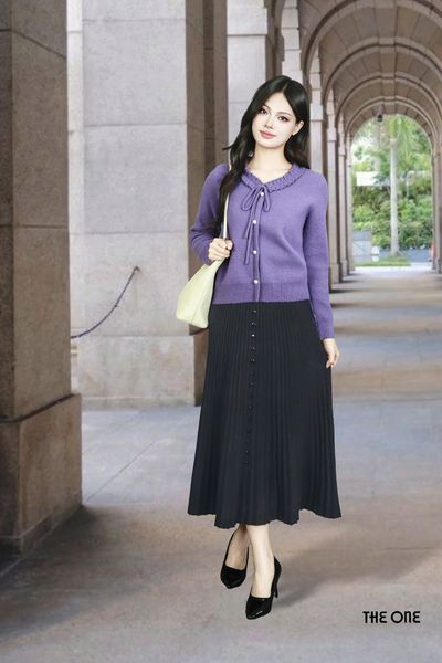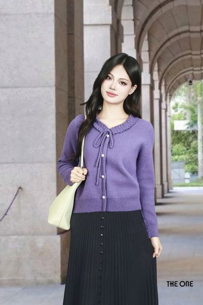 Áo len lông thỏ tím KT tay dài bo gấu cổ bèo nơ
