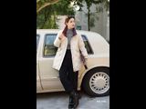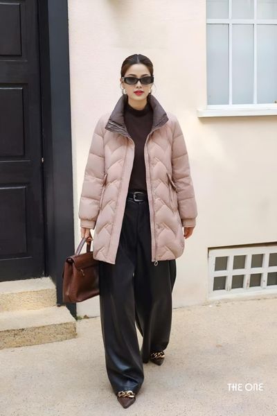 Áo phao hồng nhạt dáng ngắn túi chéo đính khuy bo tay