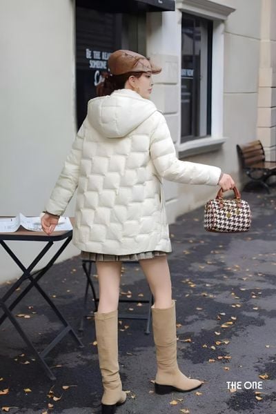 Áo phao kem dáng ngắn có mũ bông trần tổng hợp cao cấp túi chéo nắp túi trang trí dây