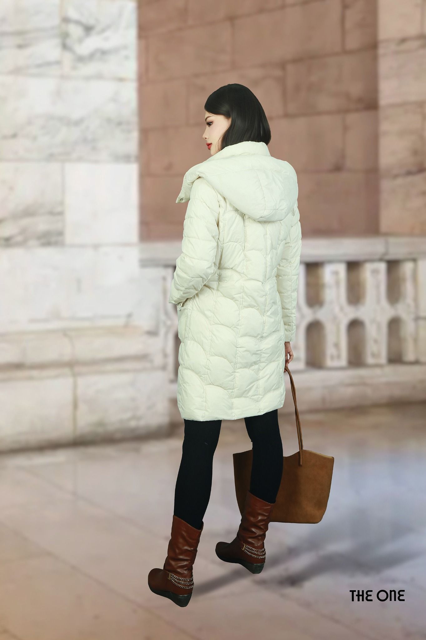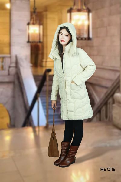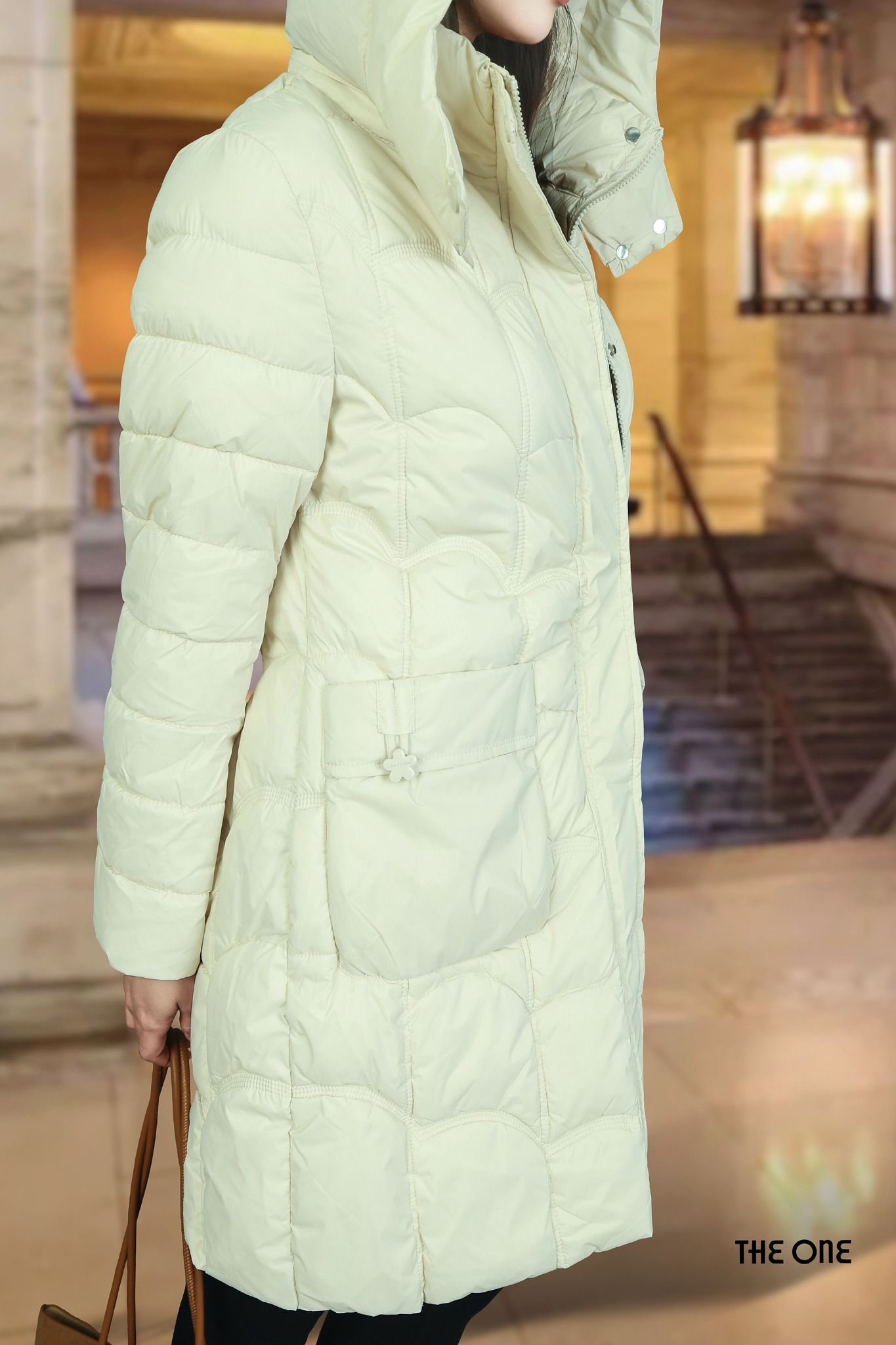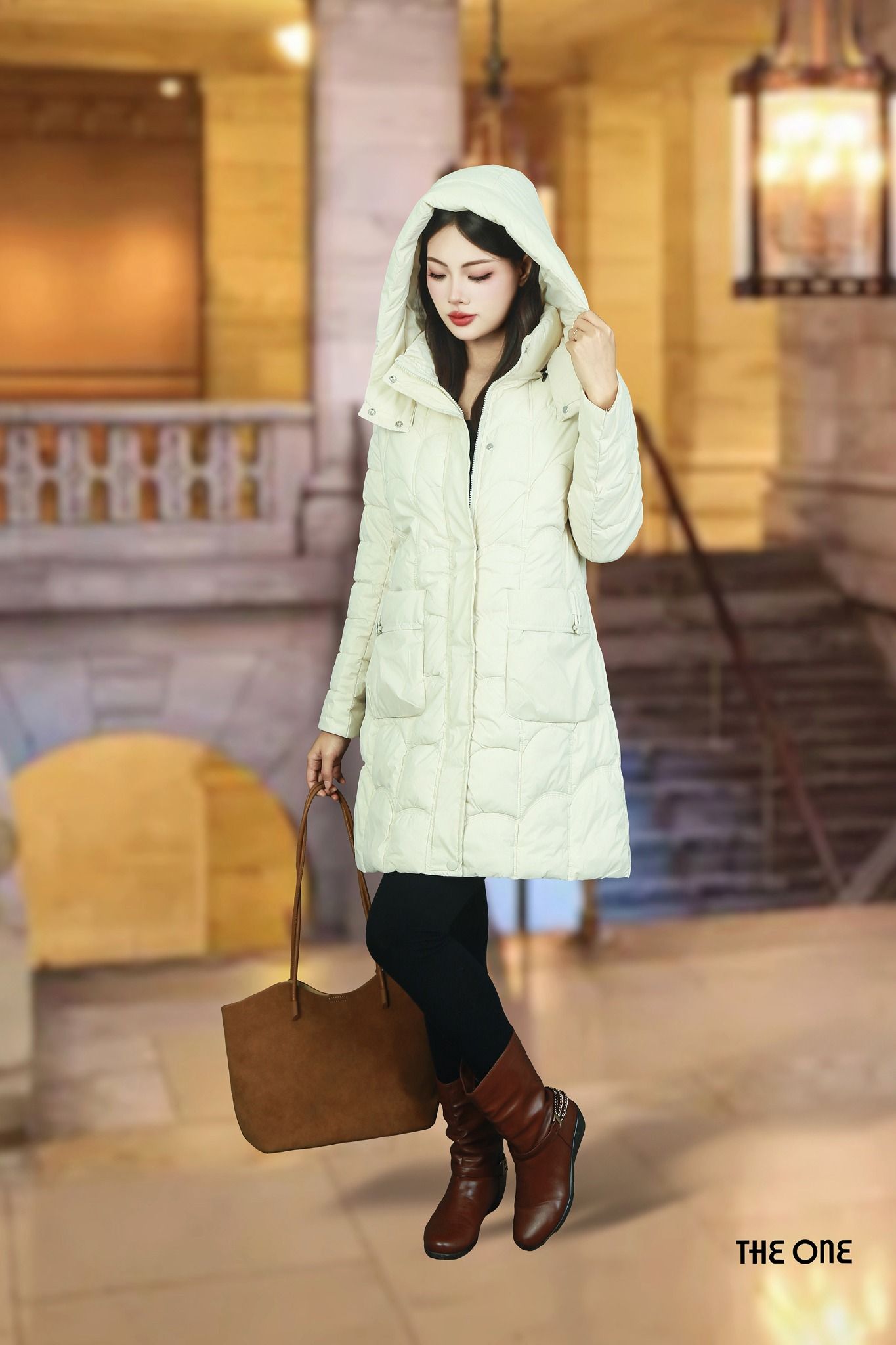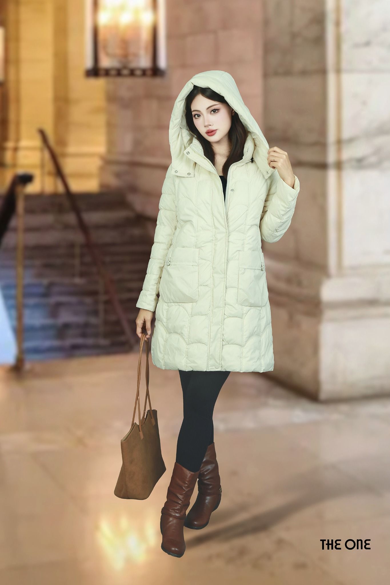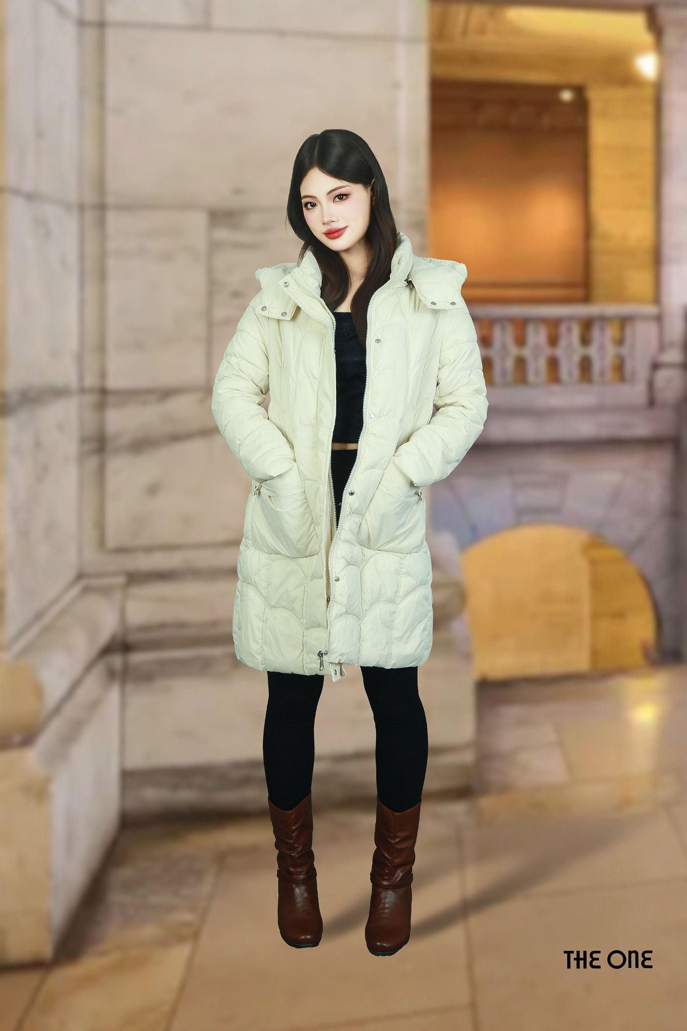Áo phao kem dáng dài có mũ 2 túi ốp