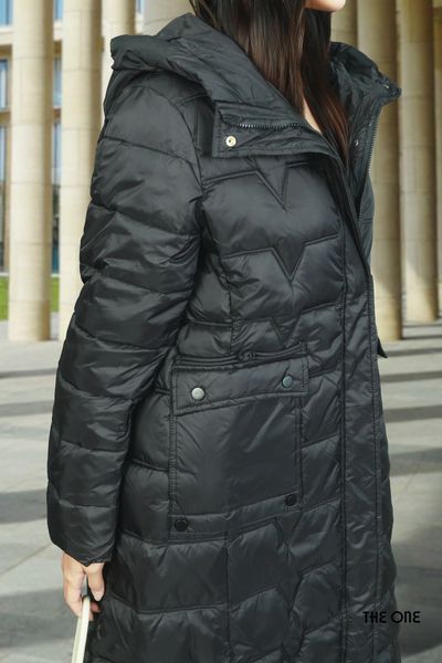 Áo phao đen dáng dài có mũ 2 túi ốp có nắp