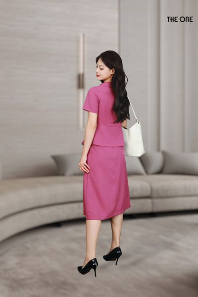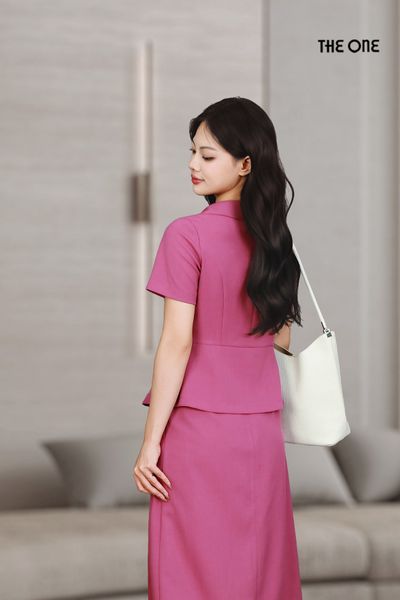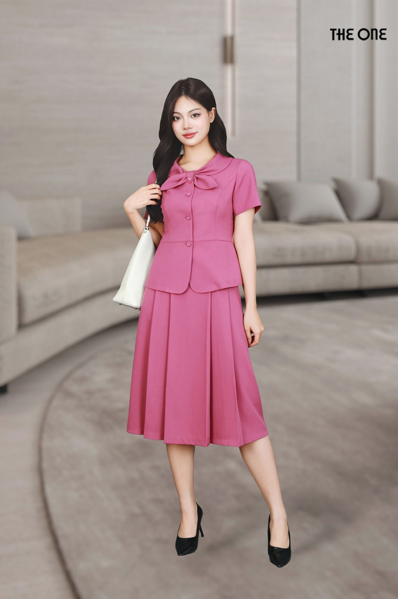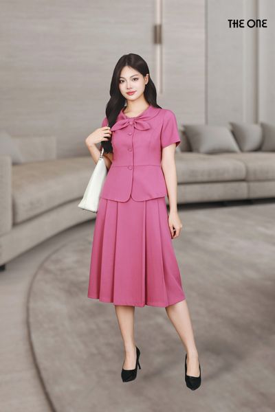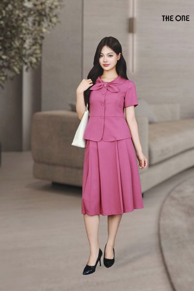 Áo vest 1 lớp tay cộc xước hồng tím đậm cổ sen tròn thắt nơ