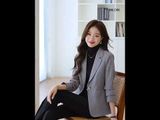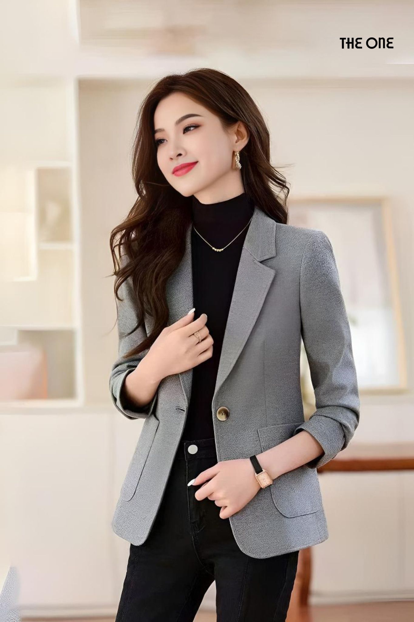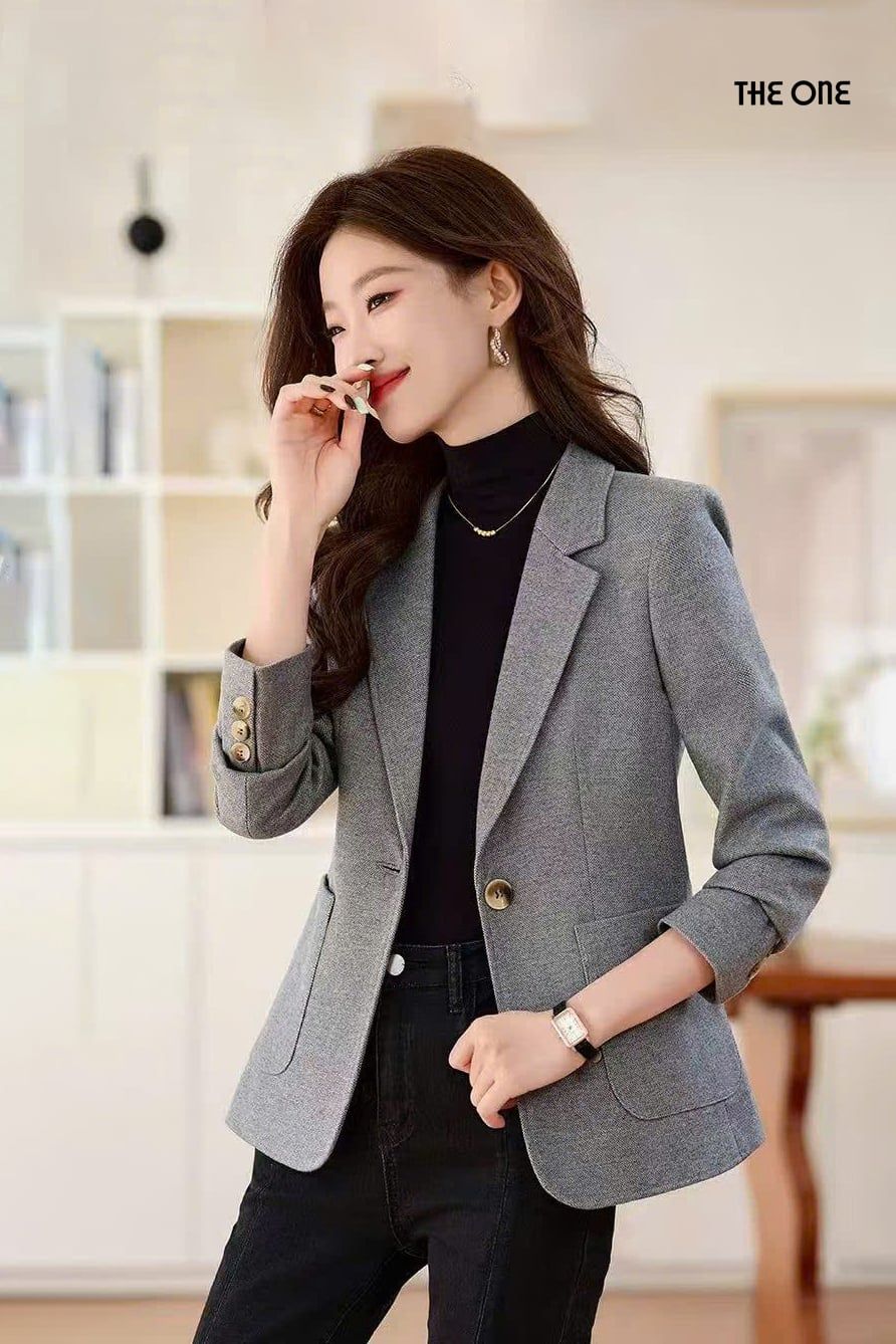 Áo vest 2 lớp tay dài dạ Tweed ghi 1 khuy túi ốp