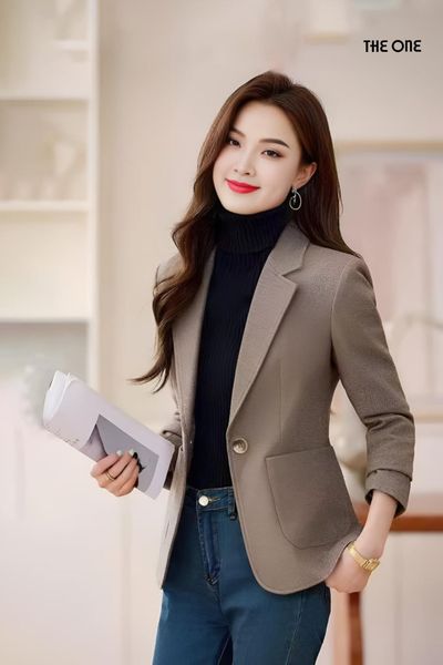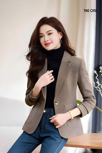 Áo vest 2 lớp tay dài dạ Tweed nâu 1 khuy túi ốp