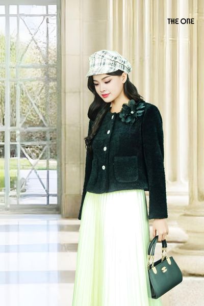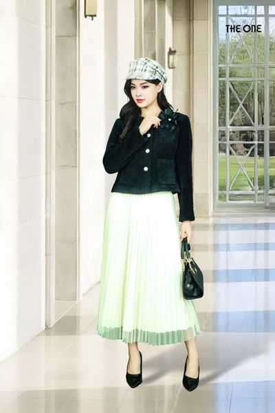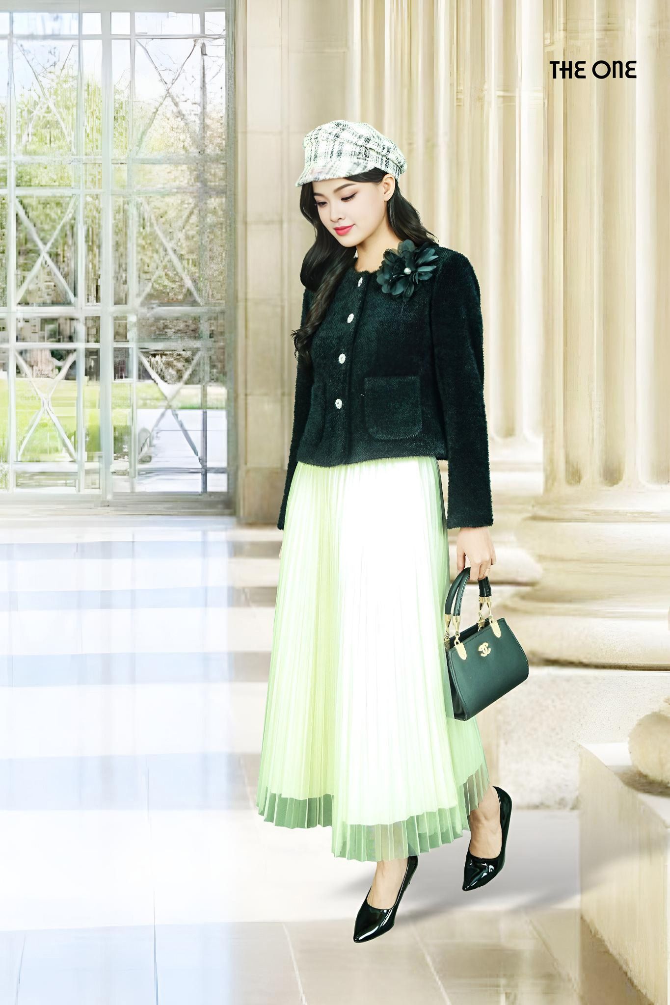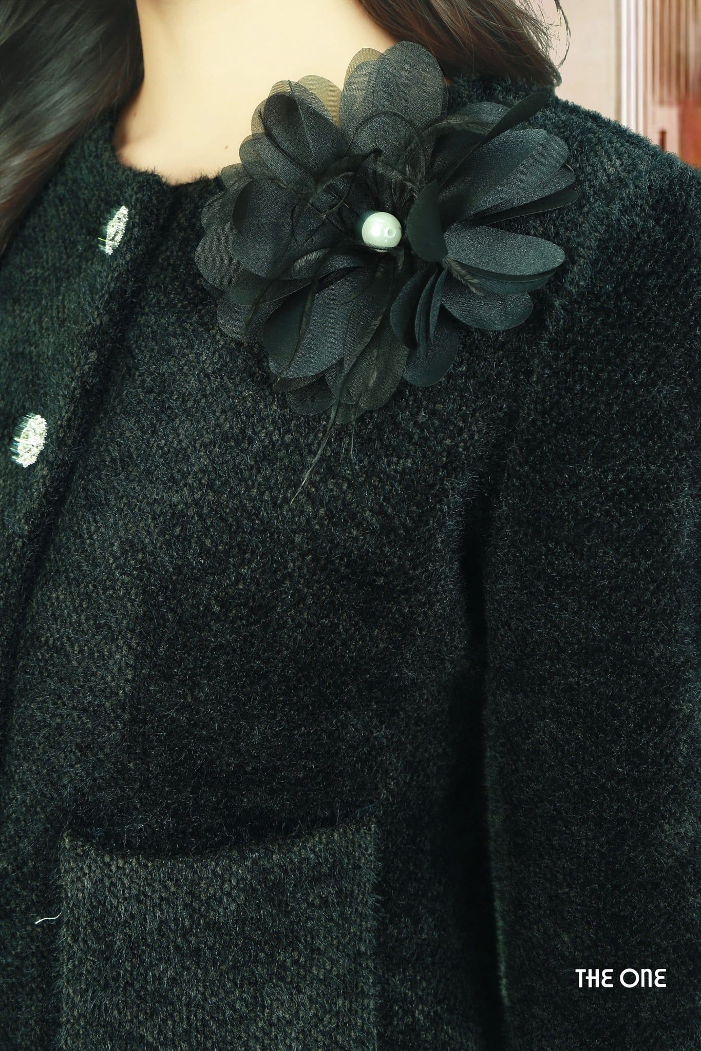 Áo vest dạ 2 lớp tay dài dạ len lông thỏ đen cổ tròn túi ốp hoa ngực khuy trai