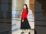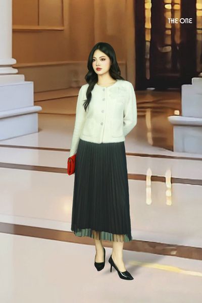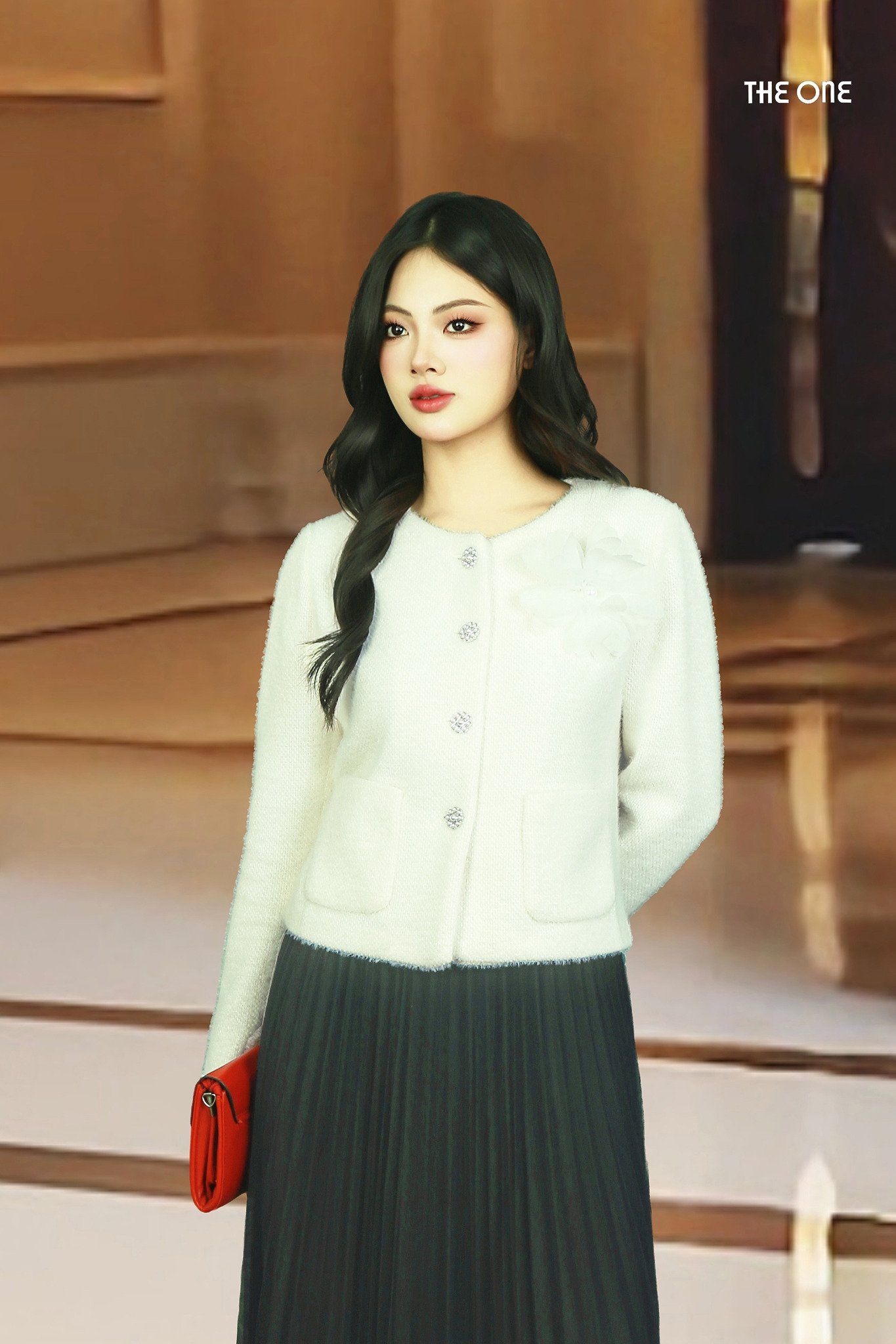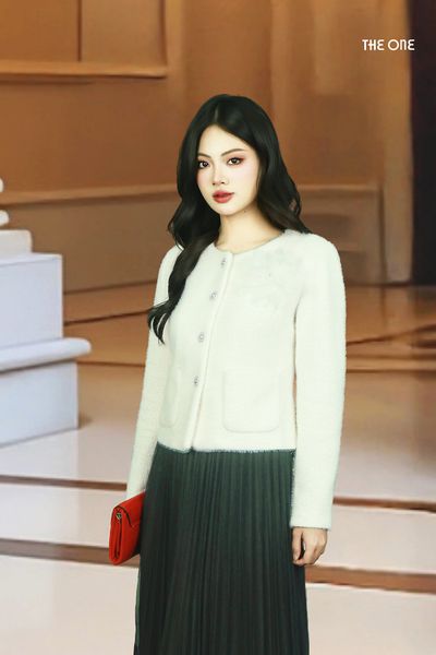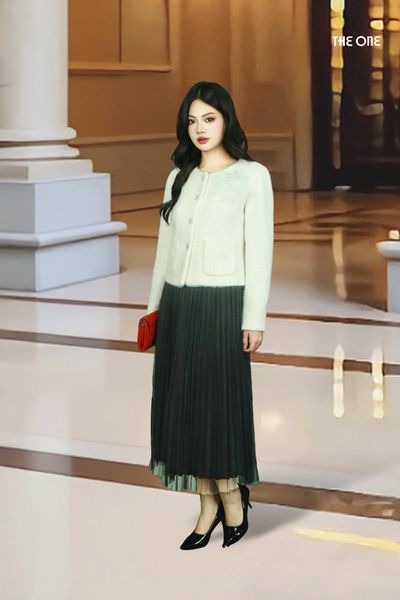 Áo vest dạ 2 lớp tay dài dạ len lông thỏ trắng cổ tròn túi ốp hoa ngực khuy trai