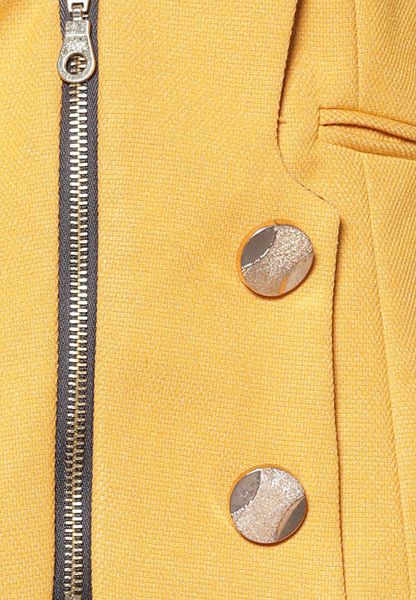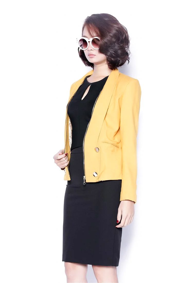 Áo vest gạo vàng tay dài kéo khóa 4 khuy trang trí