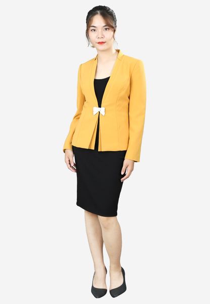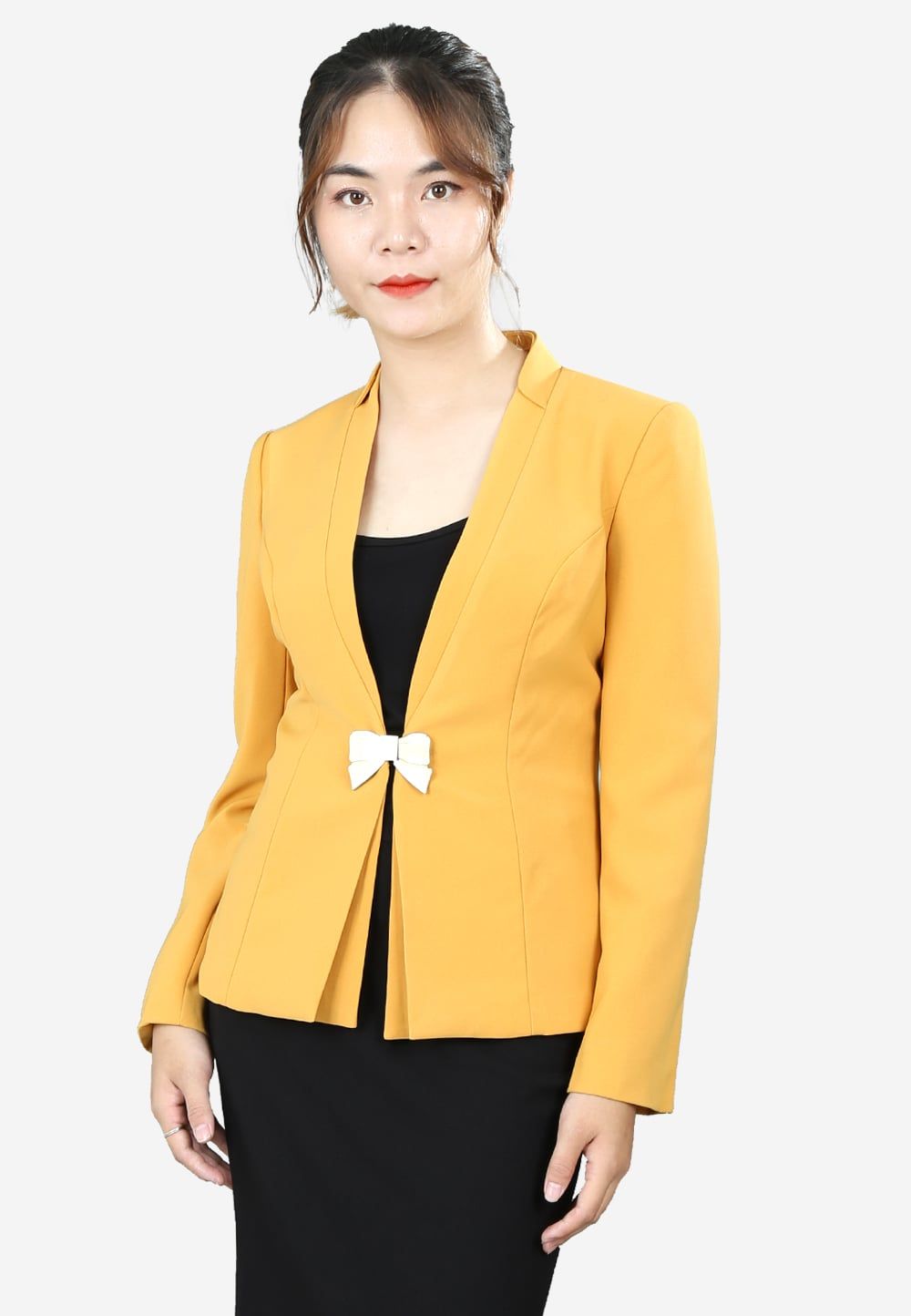 Áo vest dáng dài tay dài cổ tàu 2 lớp 1 móc cài con bướm