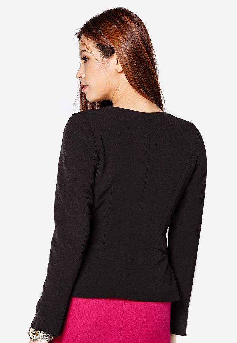 Áo blazer đen tay dài 2 lớp cổ tron 2 nẹp xẻ tà