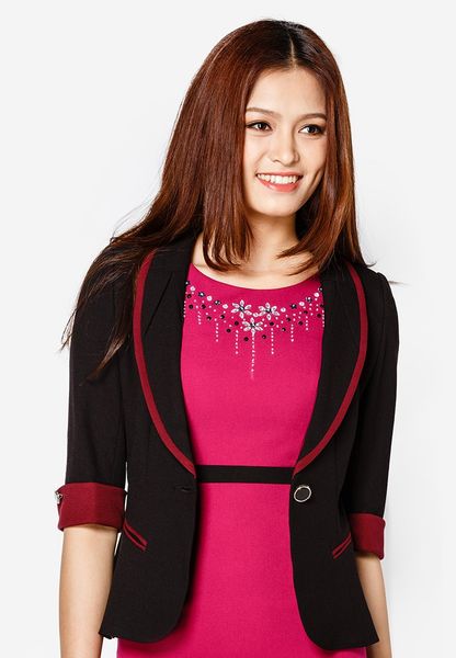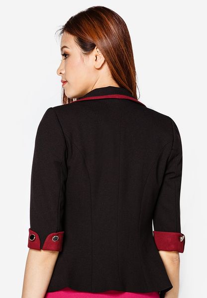Áo vest đen tay lỡ 2 lớp cổ sam xếp li ve đối