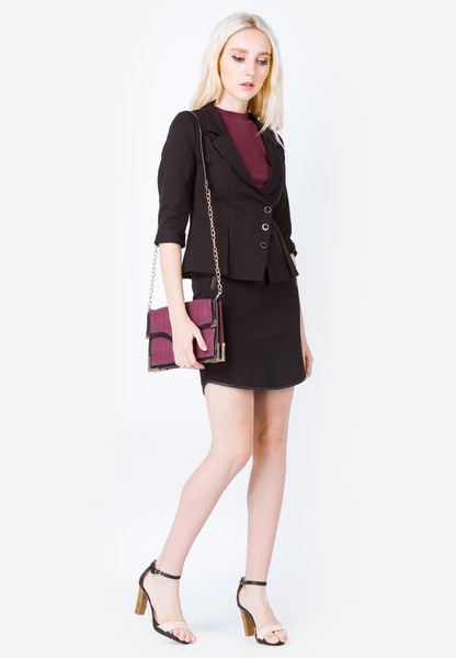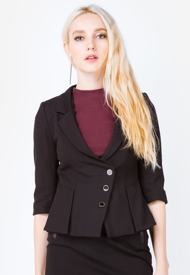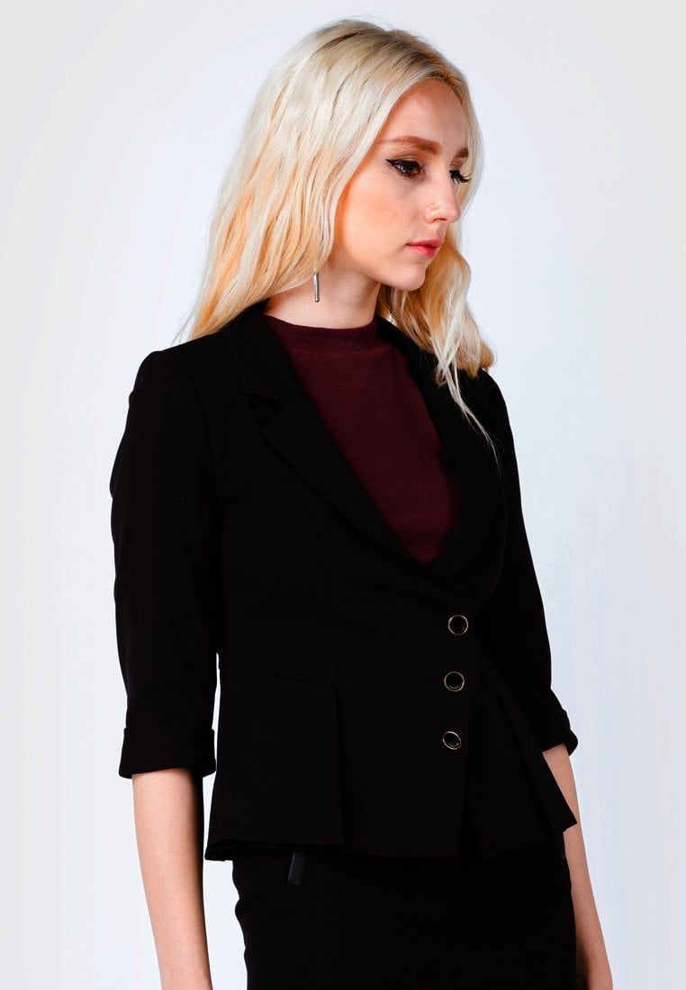 Áo vest 2 lớp tay lỡ nảy đen cài chồng 3 khuy 2 tà bong