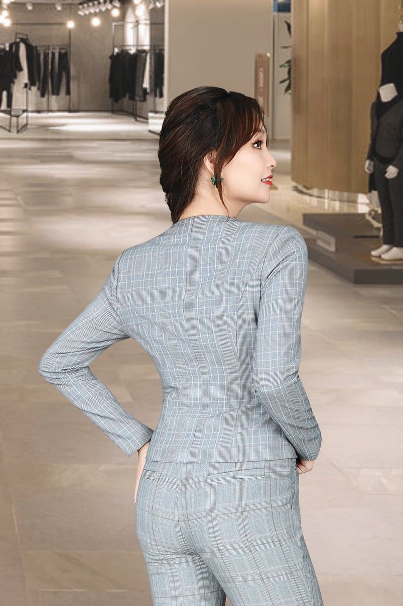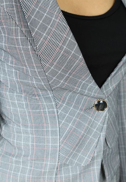 Áo vest 2 lớp tay dài vải carô hồng o cổ 2 tà ve bong đính hoa