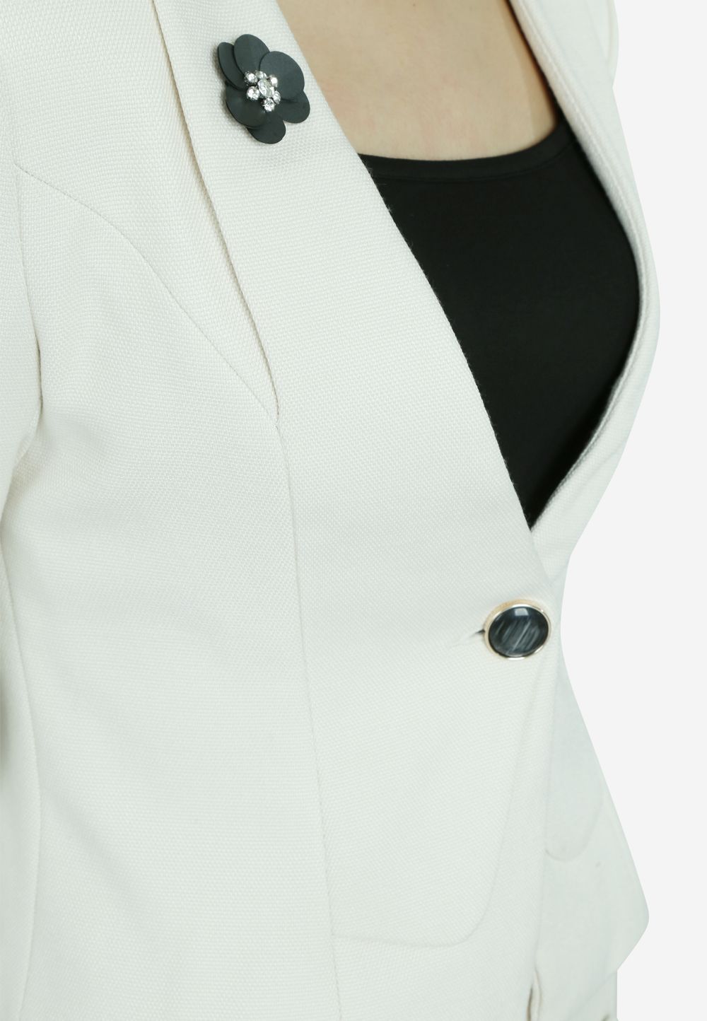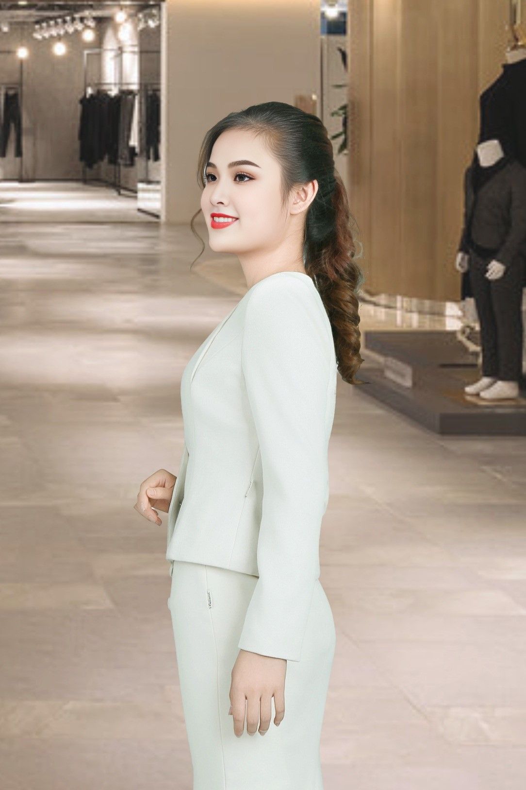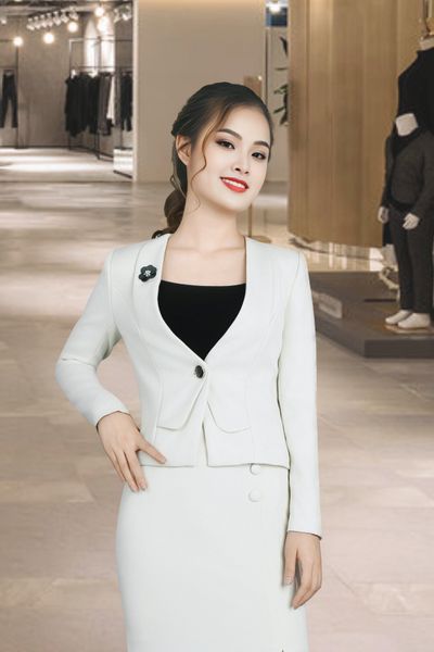 Áo vest 2 lớp tay dài đũi trắng kem không cổ 2 tà ve bong đính hoa