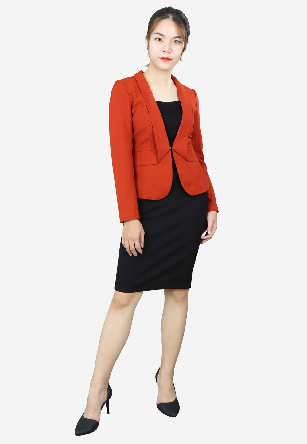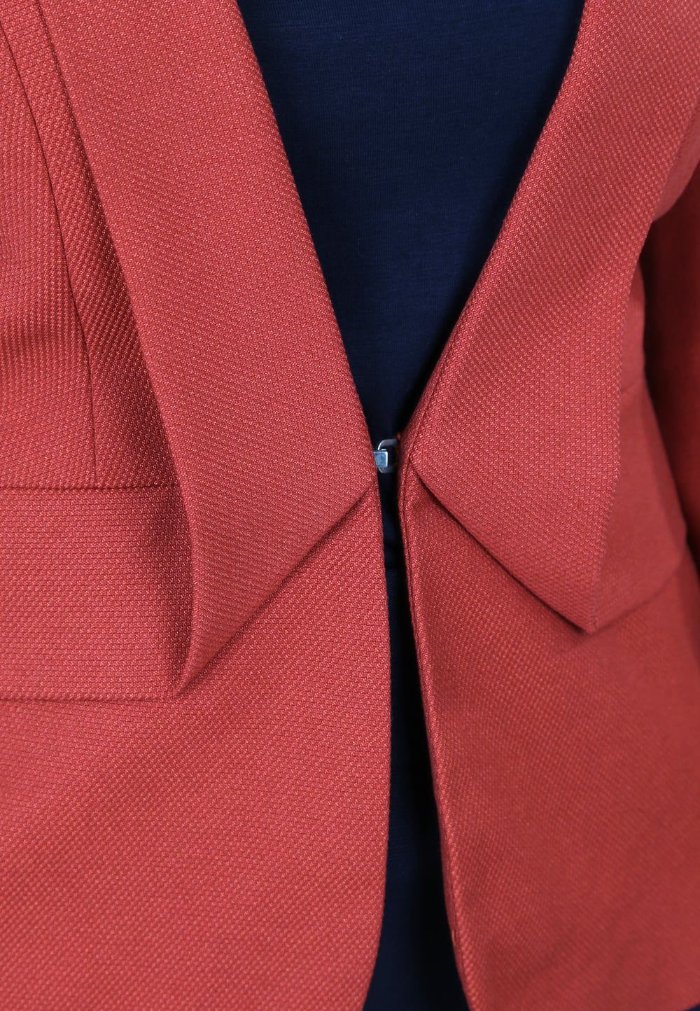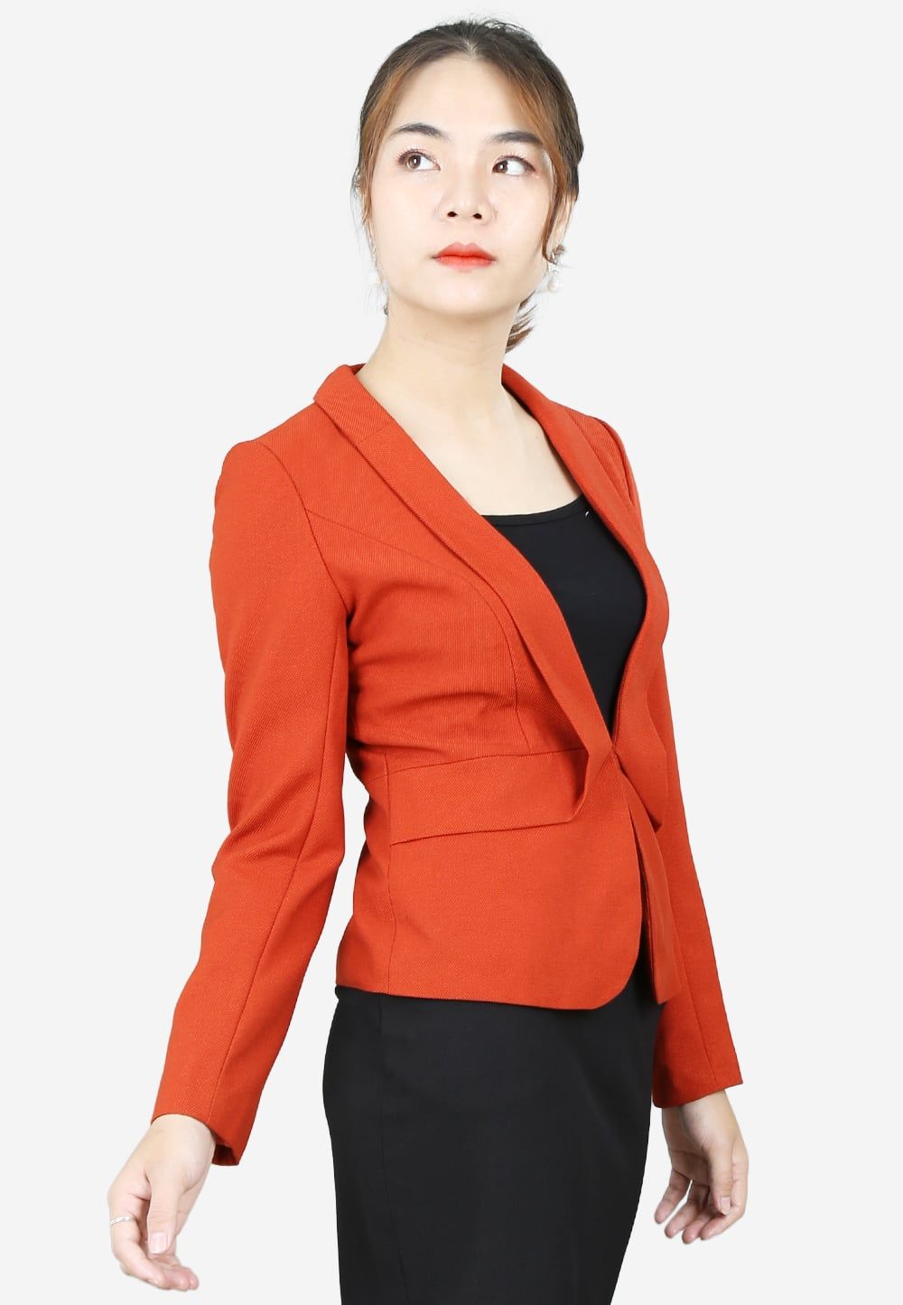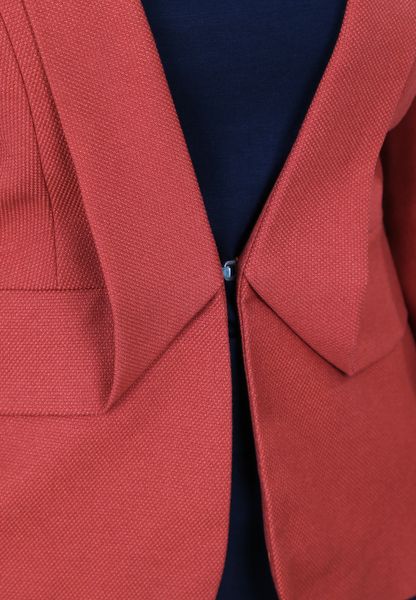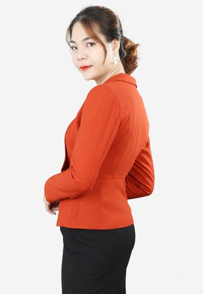 Áo vest đỏ mận tay dài cổ ve lật móc cài