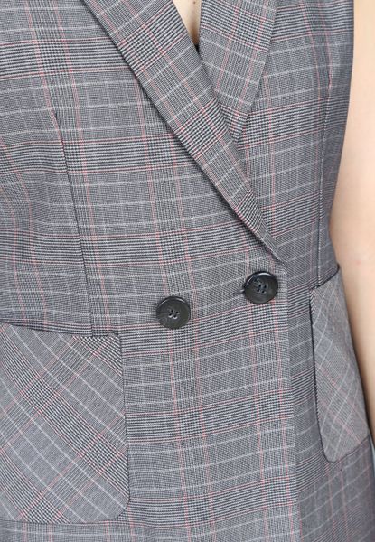 Áo blazer sát nách caro nâu dáng ngắn cổ 2 ve túi vuông 2 khuy ngang