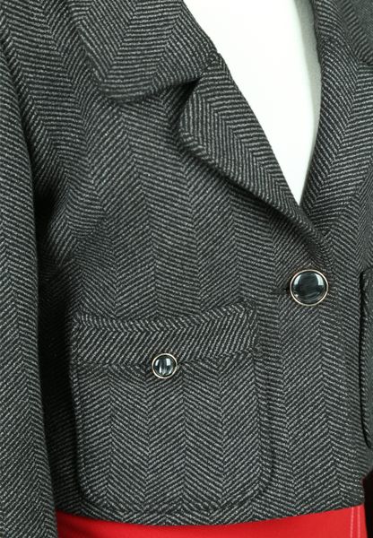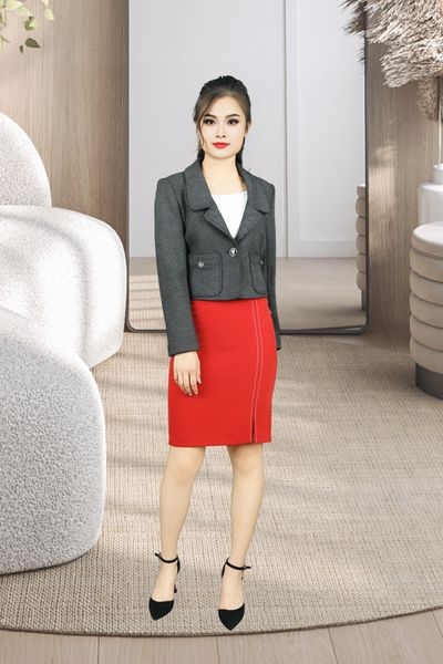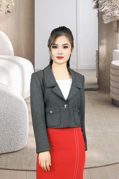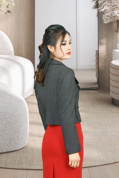 Áo vest 2 lớp tay dài 2 túi giả 1 khuy dạ xương cá dáng ngắn