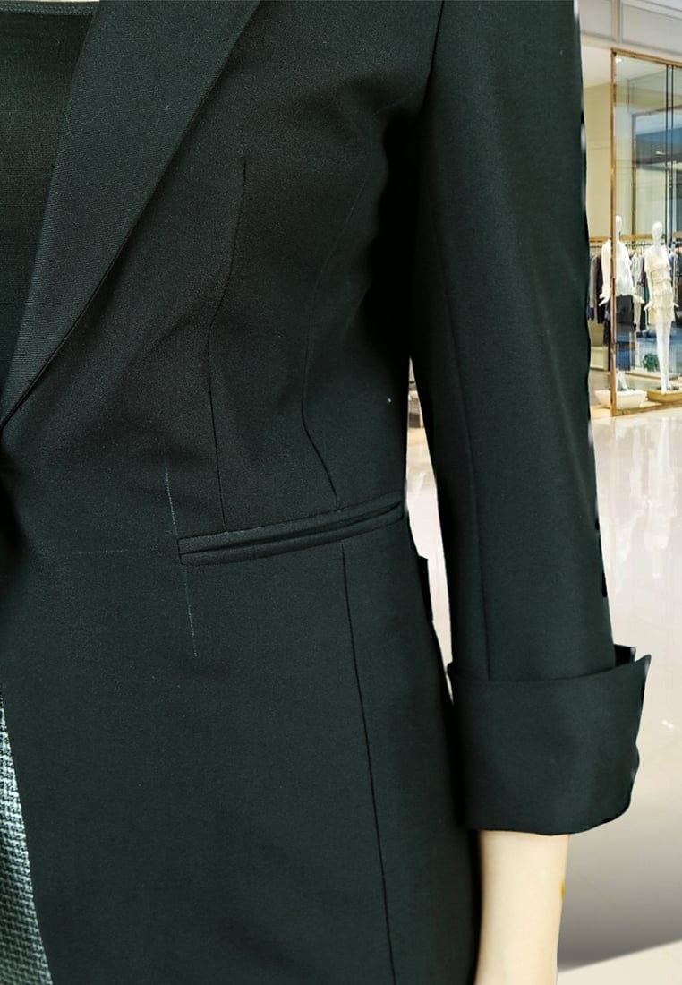 Áo vest 2 lớp tay lỡ cổ 2 ve trượt đen tay lỡ măng séc nắp túi