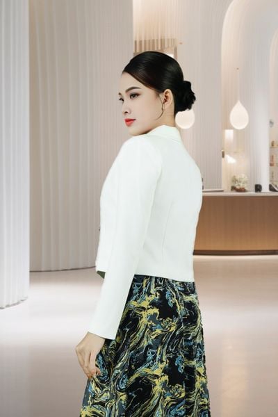 Áo vest 2 lớp dáng ngắn tay dài thô trắng cổ B 4 khuy