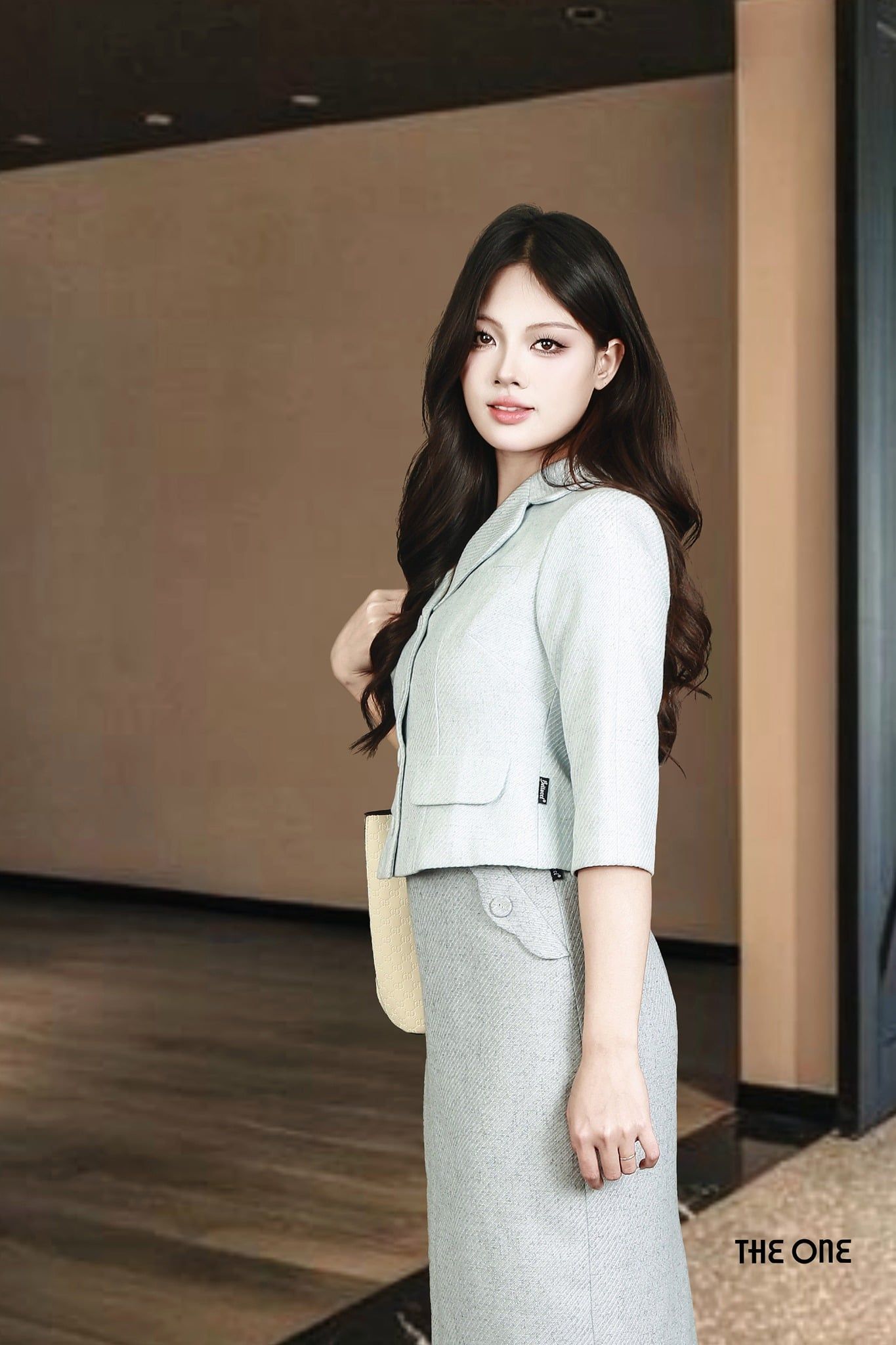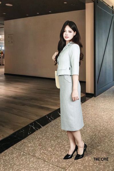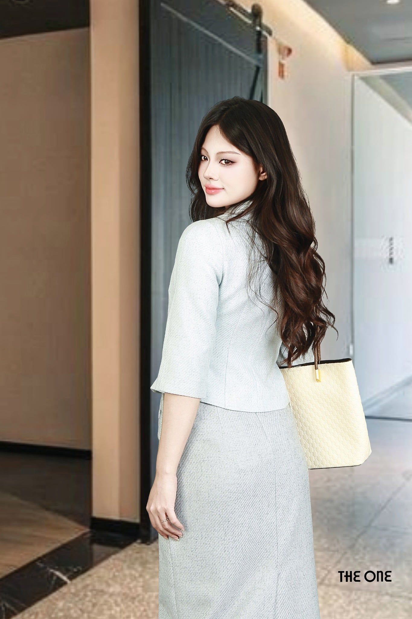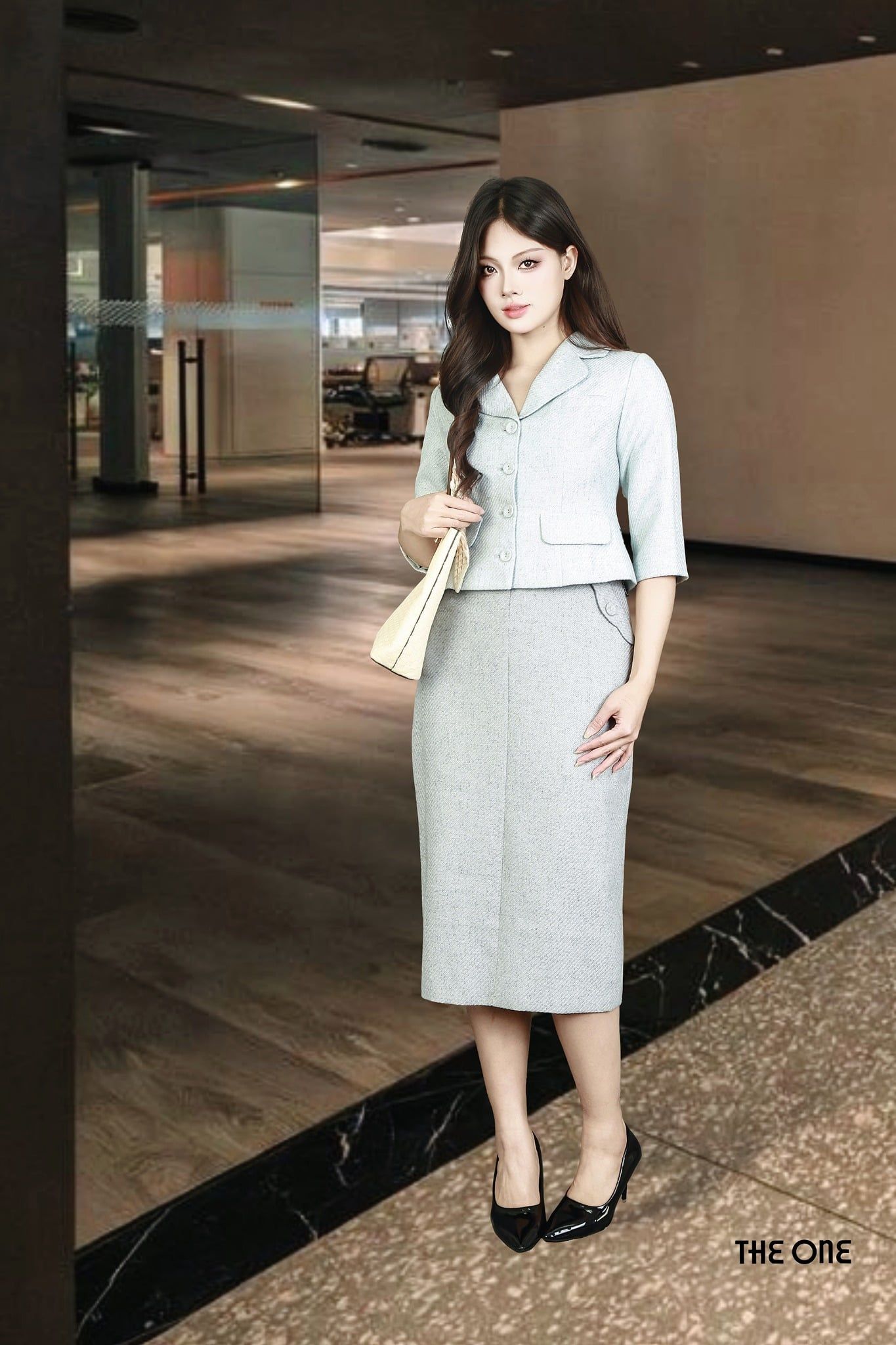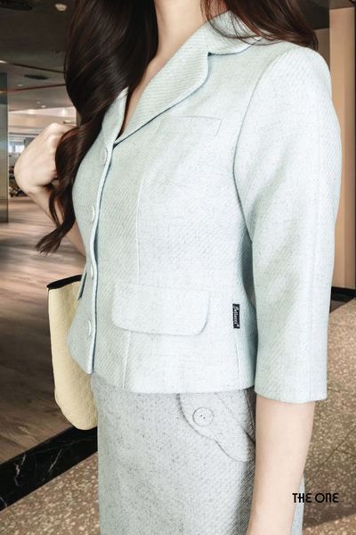 Áo vest 2 lớp tay lỡ chéo len xanh nhạt cổ 2 ve 4 khuy nắp túi