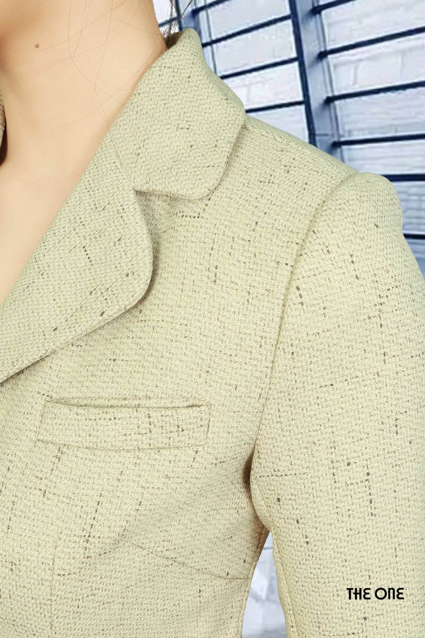 Áo vest 2 lớp tay dài text đốm vàng cổ 2 ve 4 khuy nắp túi