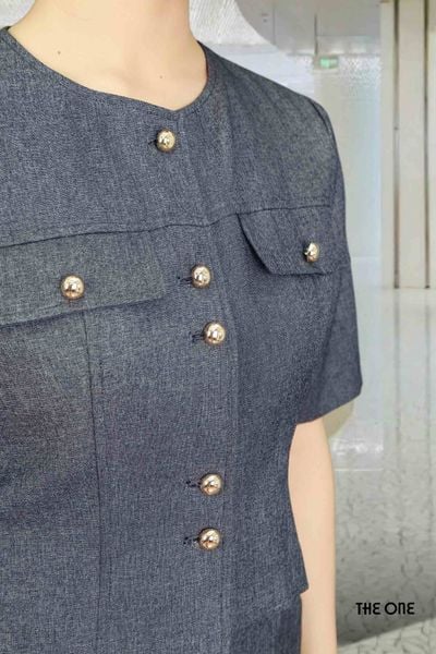 Áo vest 1 lớp tay lỡ đũi Hàn ghi đậm cổ tròn dáng ngắn 2 nắp túi