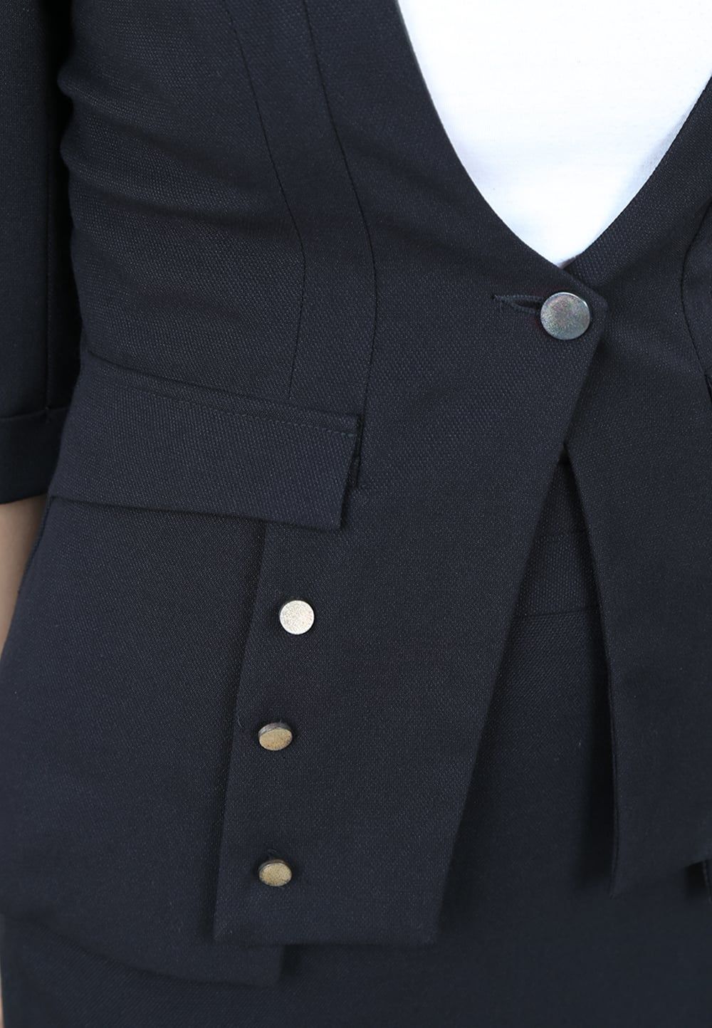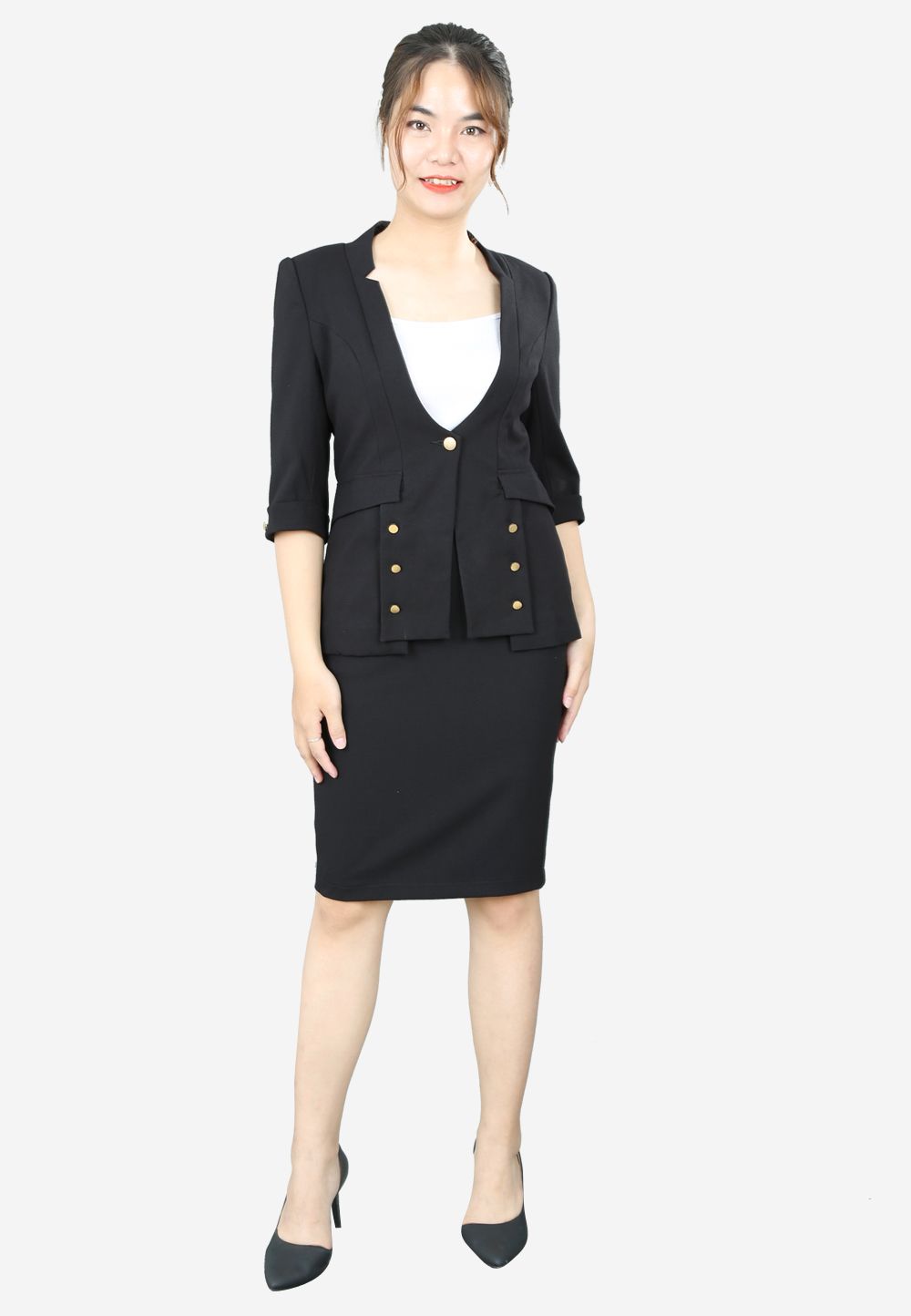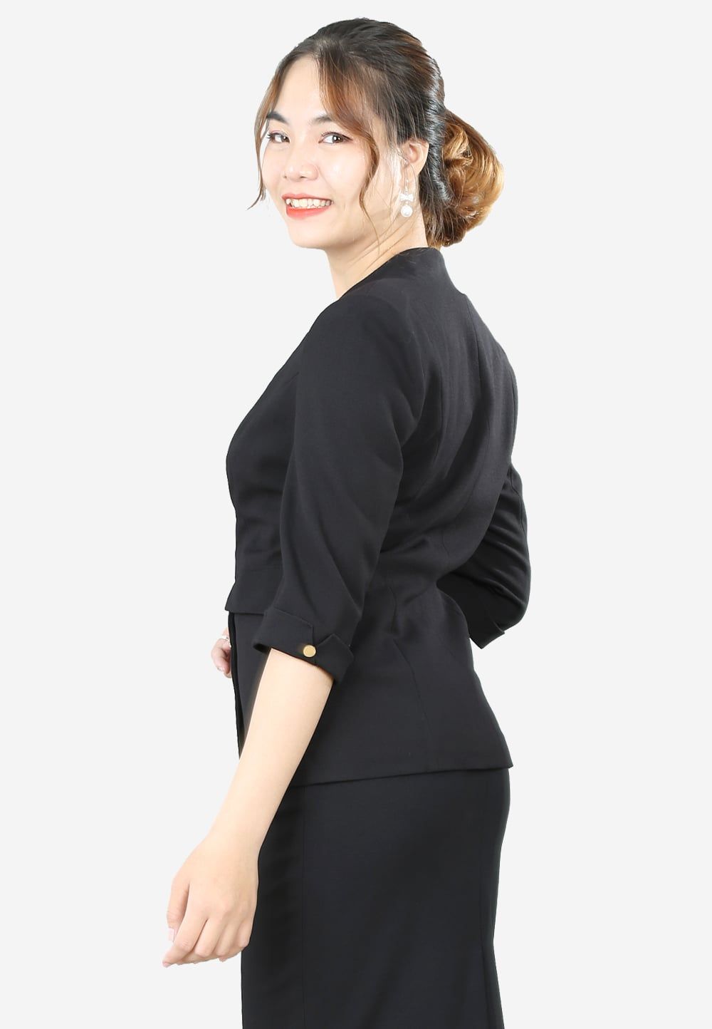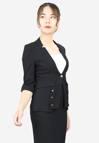 Áo vest 2 lớp tay lỡ gạo đen sịn cổ V lượn trang trí khuy 2 bên sườn