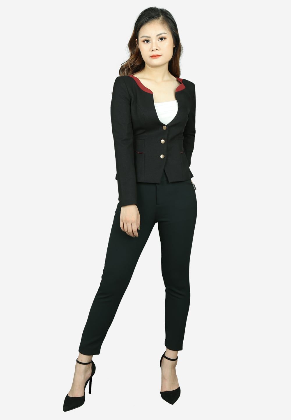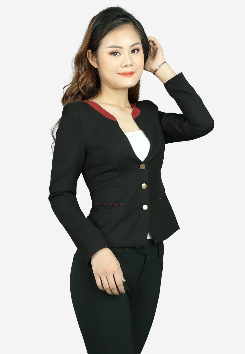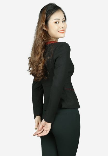 Áo vest 2 lớp tay dài gạo đen kim tuyếnsịn cổ thuyền 3 khuy nắp túi lượn sóng