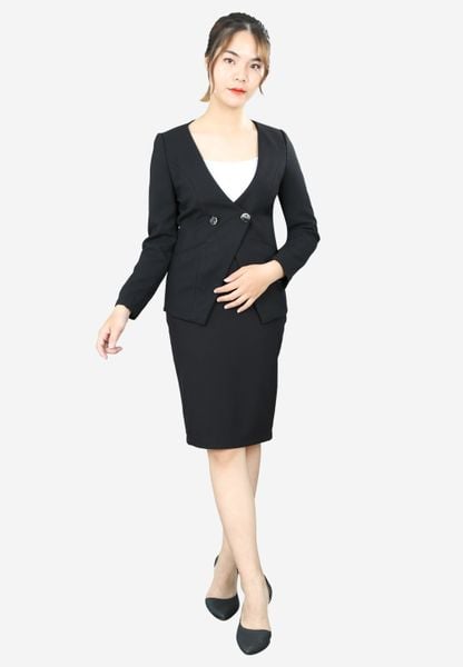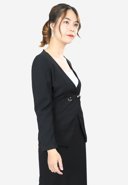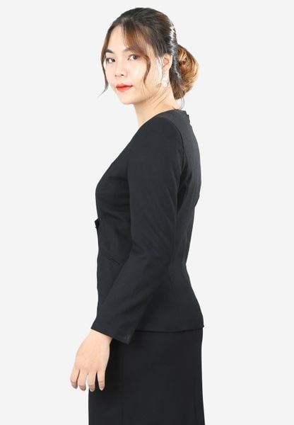 Áo vest đen gạo không cổ tay dài khoét V phía sau