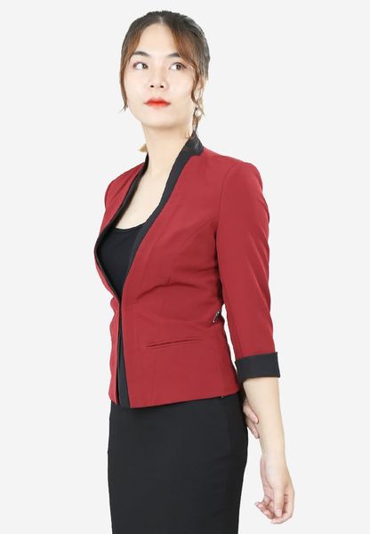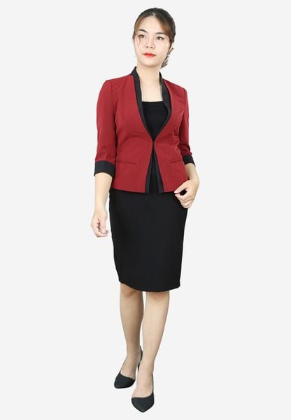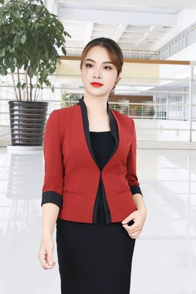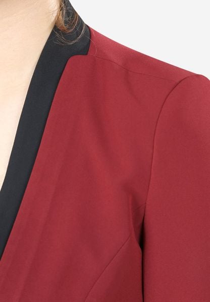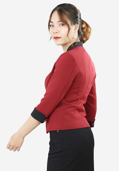 Áo vest sát nách đỏ đậm tay lỡ 2 lớp tà nẹp 2 tầng cổ leo liền