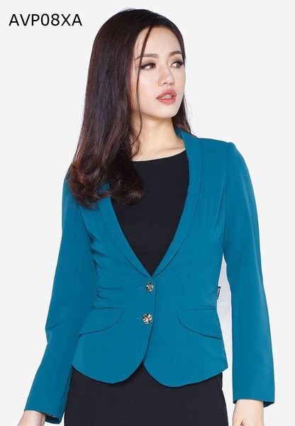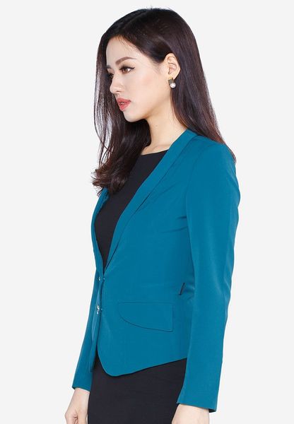 Áo vest xanh siêu nhẹ tay dài cổ sam nhỏ 2 khuy túi bổ cơi
