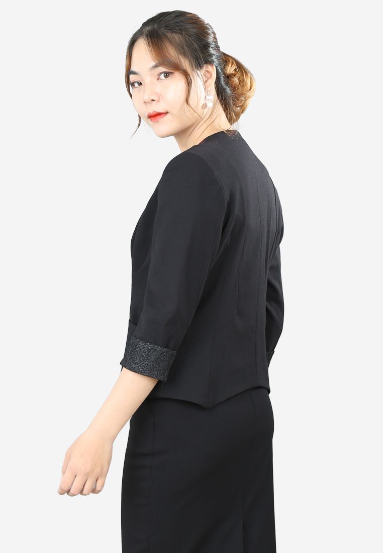 Áo vest 2 lớp gạo đen sịn không cổ phối ve túi đục