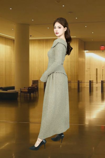 Bộ đầm len màu nâu này là một lựa chọn hoàn hảo cho những người phụ nữ yêu thích phong cách thanh lịch và sang trọng. Với thiết kế áo trễ vai, sản phẩm giúp tôn lên vẻ đẹp của cổ và vai, tạo sự thoải mái và dễ chịu khi mặc. Điểm nhấn của sản phẩm là hoa được đính trên áo, giúp tăng thêm sự nữ tính và duyên dáng cho người mặc.Vạt chéo nhọn chân bút chì dài của sản phẩm giúp tôn lên đôi chân dài và thon gọn của người mặc, đồng thời tạo sự thanh lịch và sang trọng cho bộ trang phục. Với chất liệu len cao cấp, sản phẩm có độ bền cao, giữ ấm tốt và dễ dàng bảo quản.Bộ đầm len màu nâu này có thể phù hợp với nhiều dịp khác nhau, từ đi làm đến dự tiệc. Sản phẩm có thể kết hợp với giày cao gót và phụ kiện để tạo nên một bộ trang phục hoàn hảo. Nếu bạn đang tìm kiếm một bộ đầm len màu nâu thanh lịch và sang trọng, sản phẩm này sẽ là một lựa chọn tuyệt vời.