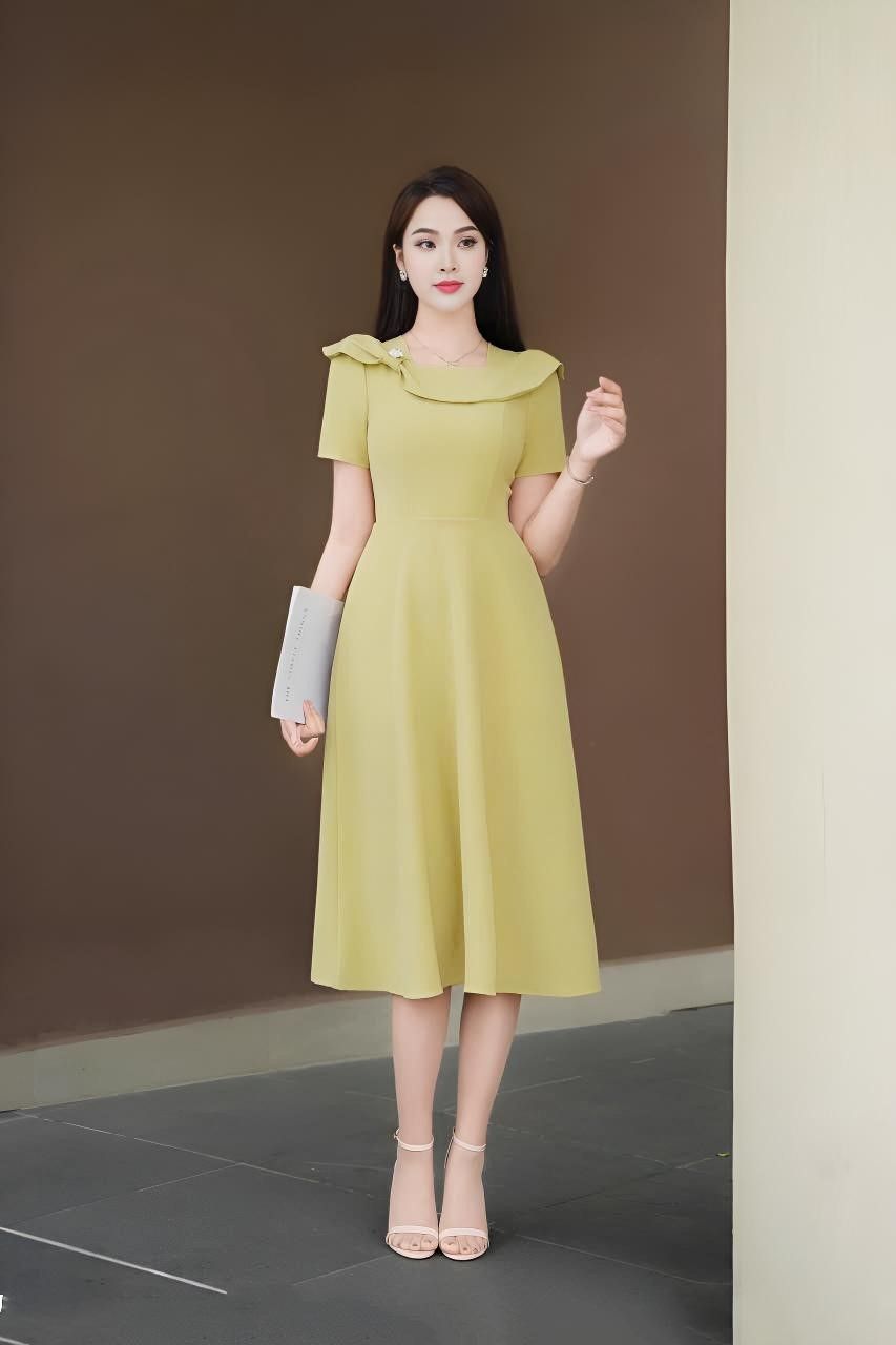 Đầm 2 lớp tay cộc chéo màu vàng là một sản phẩm thời trang đầy phong cách và sự thanh lịch. Với thiết kế tay cộc chéo, đầm giúp che khuyết điểm vòng 2 và tạo cảm giác thoải mái khi mặc. Màu vàng tươi sáng của sản phẩm giúp tôn lên vẻ đẹp của người mặc.Cổ vuông của đầm tạo điểm nhấn cho trang phục, giúp người mặc trông thanh lịch và sang trọng hơn. Bèo cổ đính trang trí giúp trang phục trở nên nữ tính và dịu dàng hơn. Dáng xòe của đầm giúp che khuyết điểm vòng 2, tạo cảm giác thoải mái khi mặc và giúp người mặc trông thanh lịch và nữ tính hơn.Sản phẩm này là một lựa chọn hoàn hảo cho những buổi tiệc, sự kiện hay các dịp đặc biệt. Với thiết kế đơn giản nhưng không kém phần tinh tế, đầm 2 lớp tay cộc chéo màu vàng sẽ giúp bạn tự tin và nổi bật trong mọi hoàn cảnh