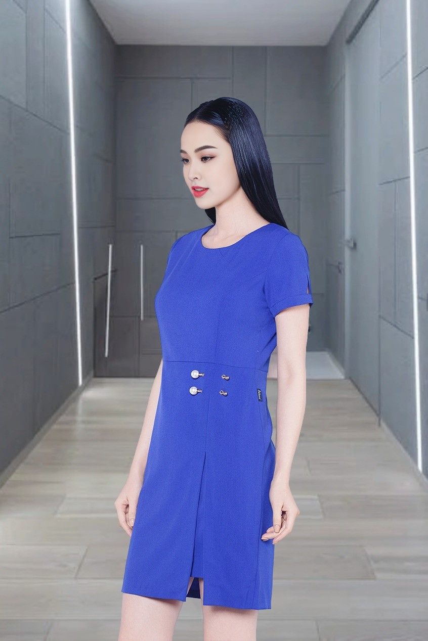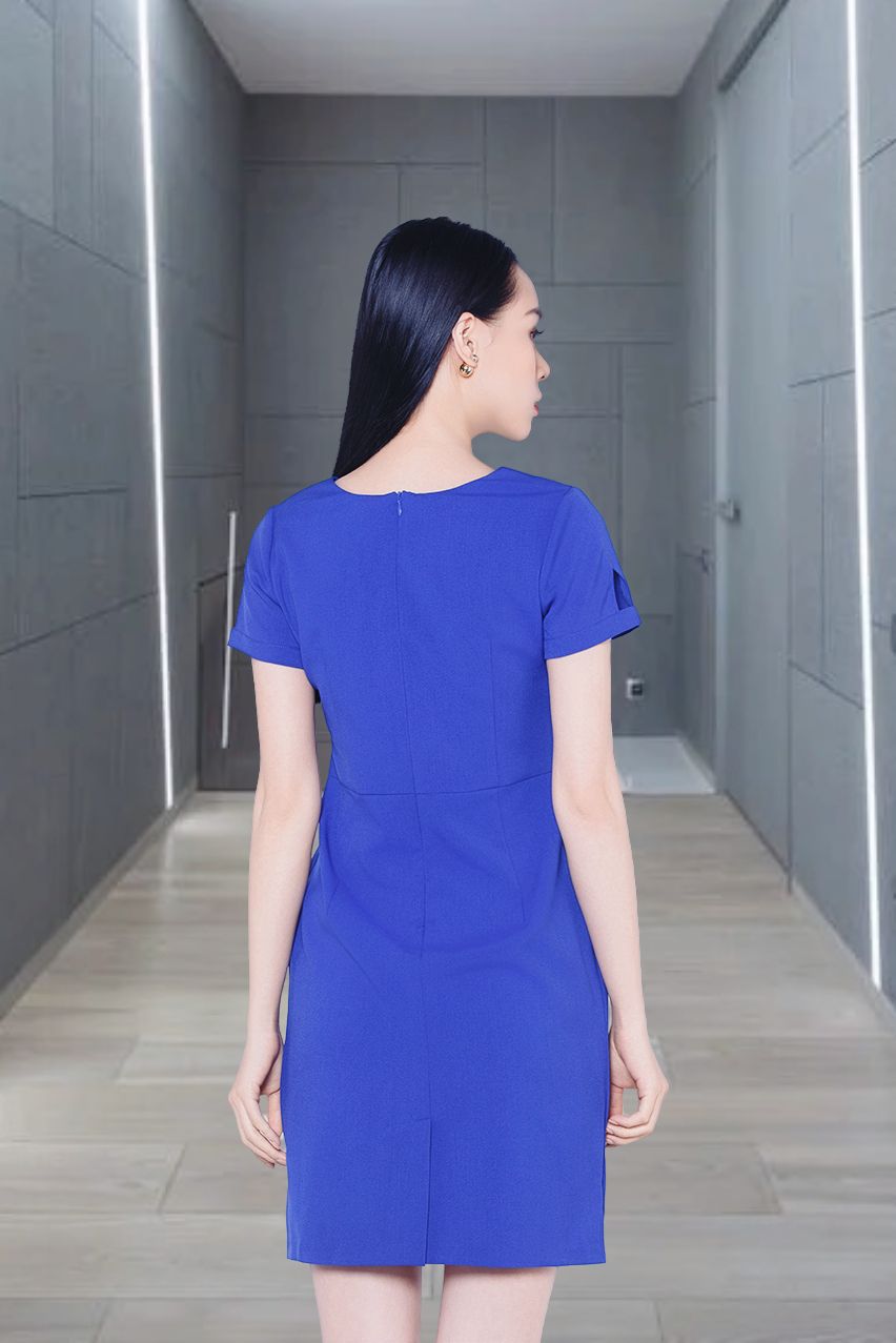 Đầm 1 lớp sát nách vải coban dáng ôm xẻ thân trước đáp trong đột 2 ô rê trang trí 1 bên sườn