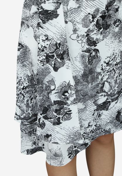 Đầm 1 lớp tay cộc lụa trượt đen trắng cổ V dây xích chân xòe xếp 1 bên