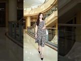 Đầm 2 lớp tay cộc luạ mịn đen hoa nhí nâu chân xòe xếp nhún