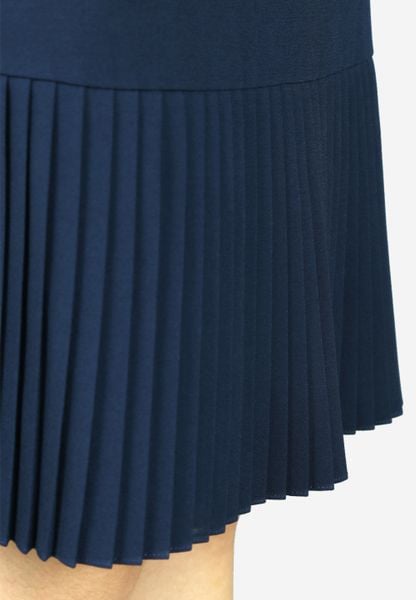 Đầm 1 lớp tay cộc vải mango tím than dáng xuông chân xếp li dập
