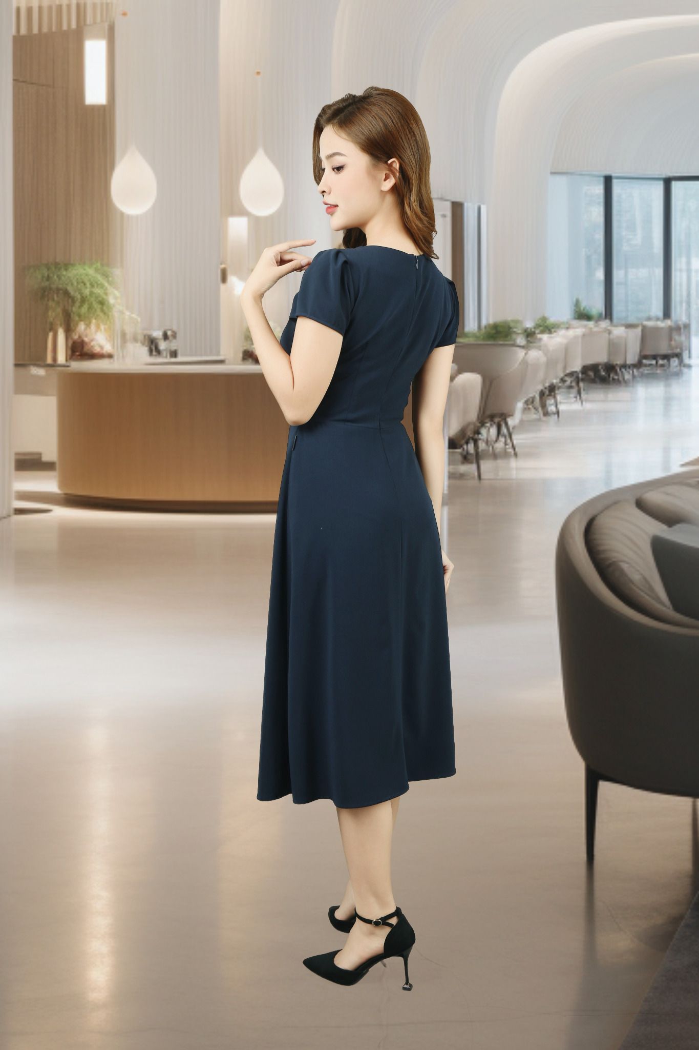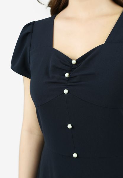 Đầm 2 lớp tay cộc mango tím than cổ U khuy trai