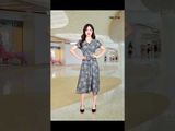 Đầm 2 lớp tay cộc lụa Hàn Châu TT hình cổ 2 ve dáng xòe đai eo