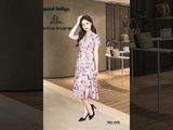 Đầm 2 lớp tay cộc cổ nam không chân lụa nhật hoa hồng chân xếp ly