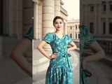 Đầm 2 lớp tay cộc lụa hàn châu hoa xanh cổ tim dây nơ