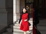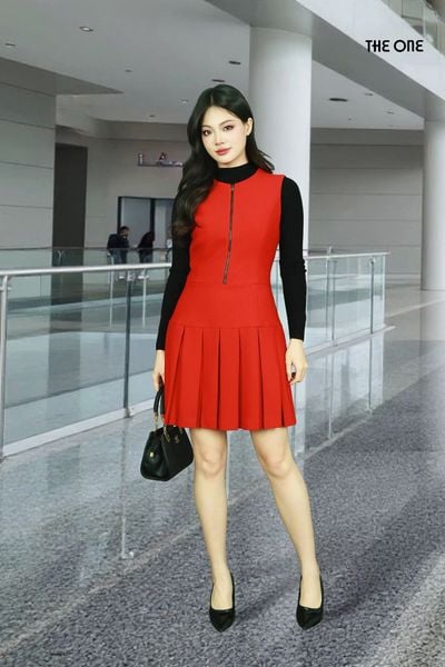 Đầm 2 lớp sát nách dạ đỏ cổ tròn khóa giữa chân xếp ly