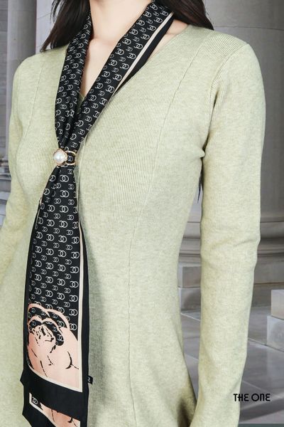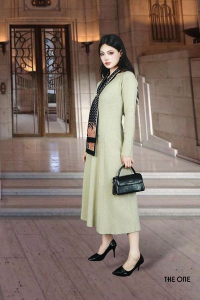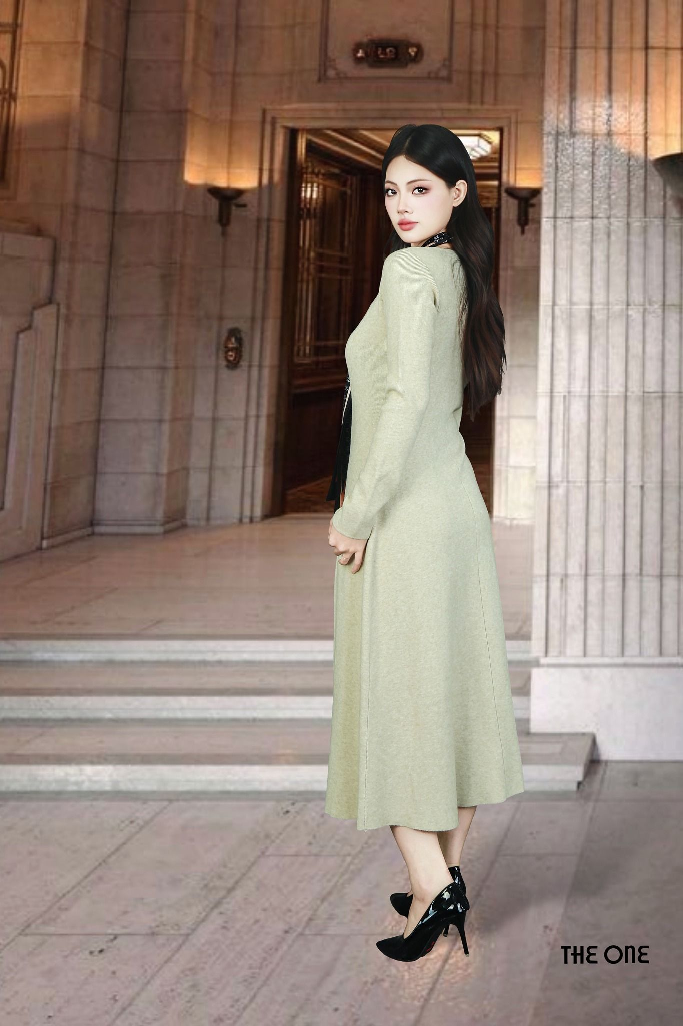 Đầm len be đậm tay dài dáng dài cổ tim 7 mảnh