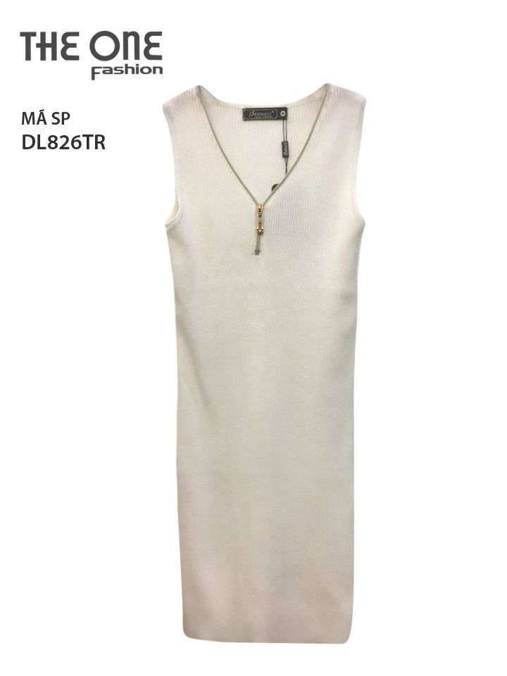 Đầm len sát nách trắng dáng ôm cổ khóa đồng sau