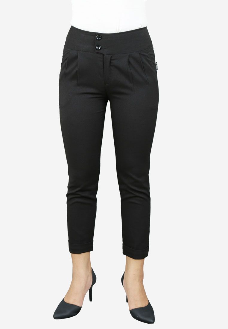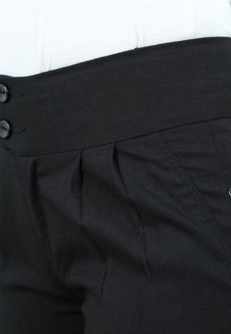 Quần ngố dài xước đen xếp li cạp 7 cm