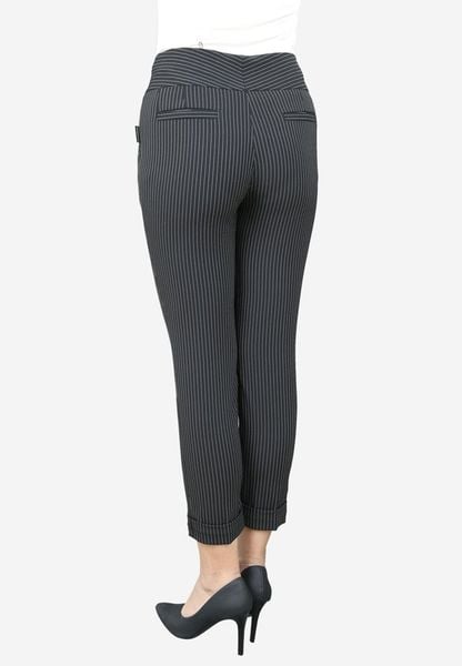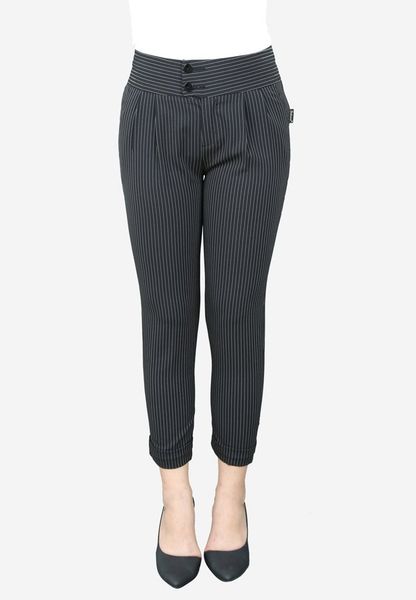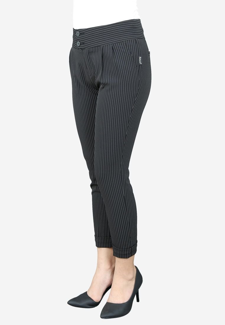Quần ngố dài nền đen kẻ trắng xếp li cạp 7 cm