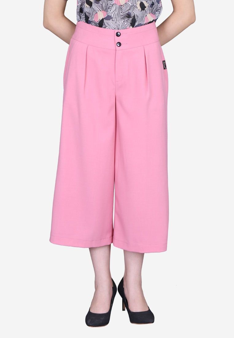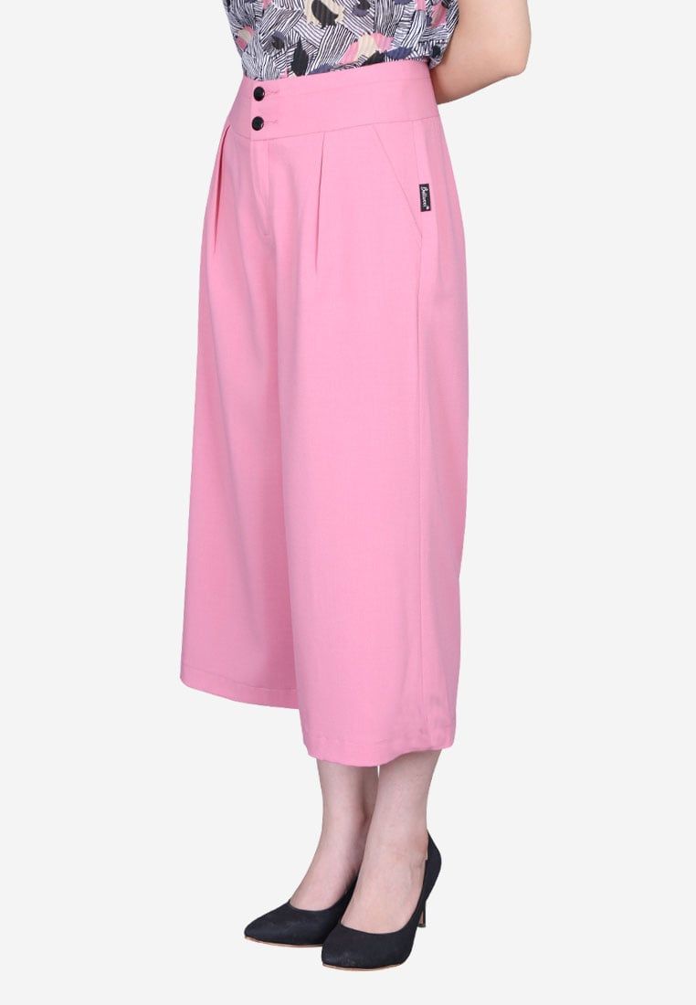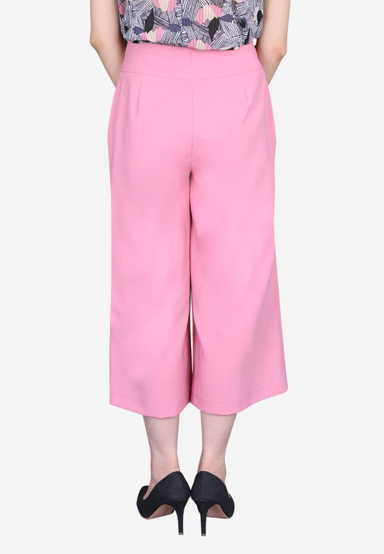 Quần lửng xước hồng ống rộng khóa sườn li trước