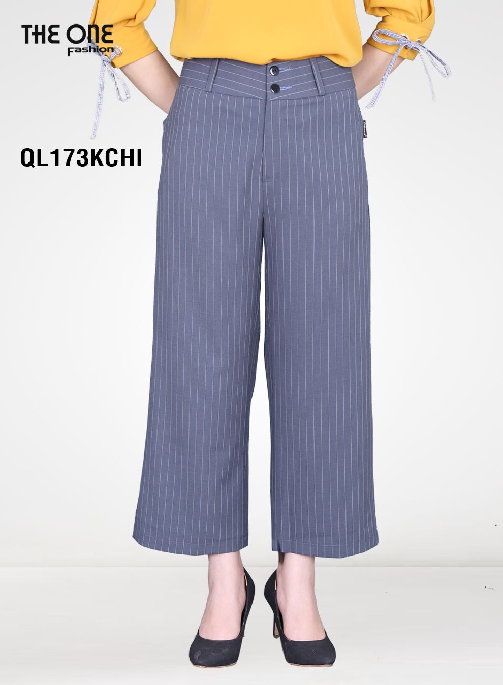 Quần ống sớ kẻ trắng nền chì 2 khuy cạp 6 cm