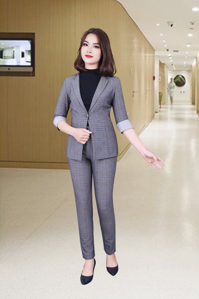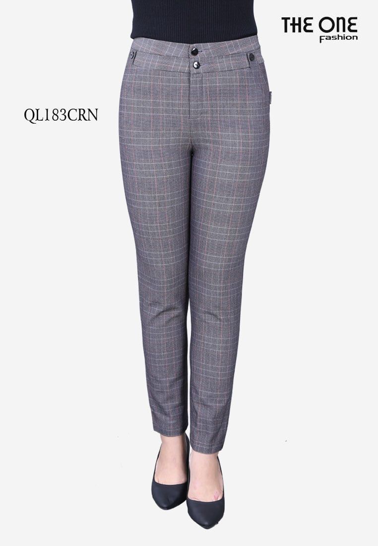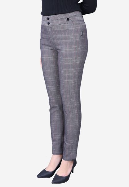 Quần ống côn vải caro nâu xẫm cạp 2 tầng 2 khuy đỉa chờm đính khuy
